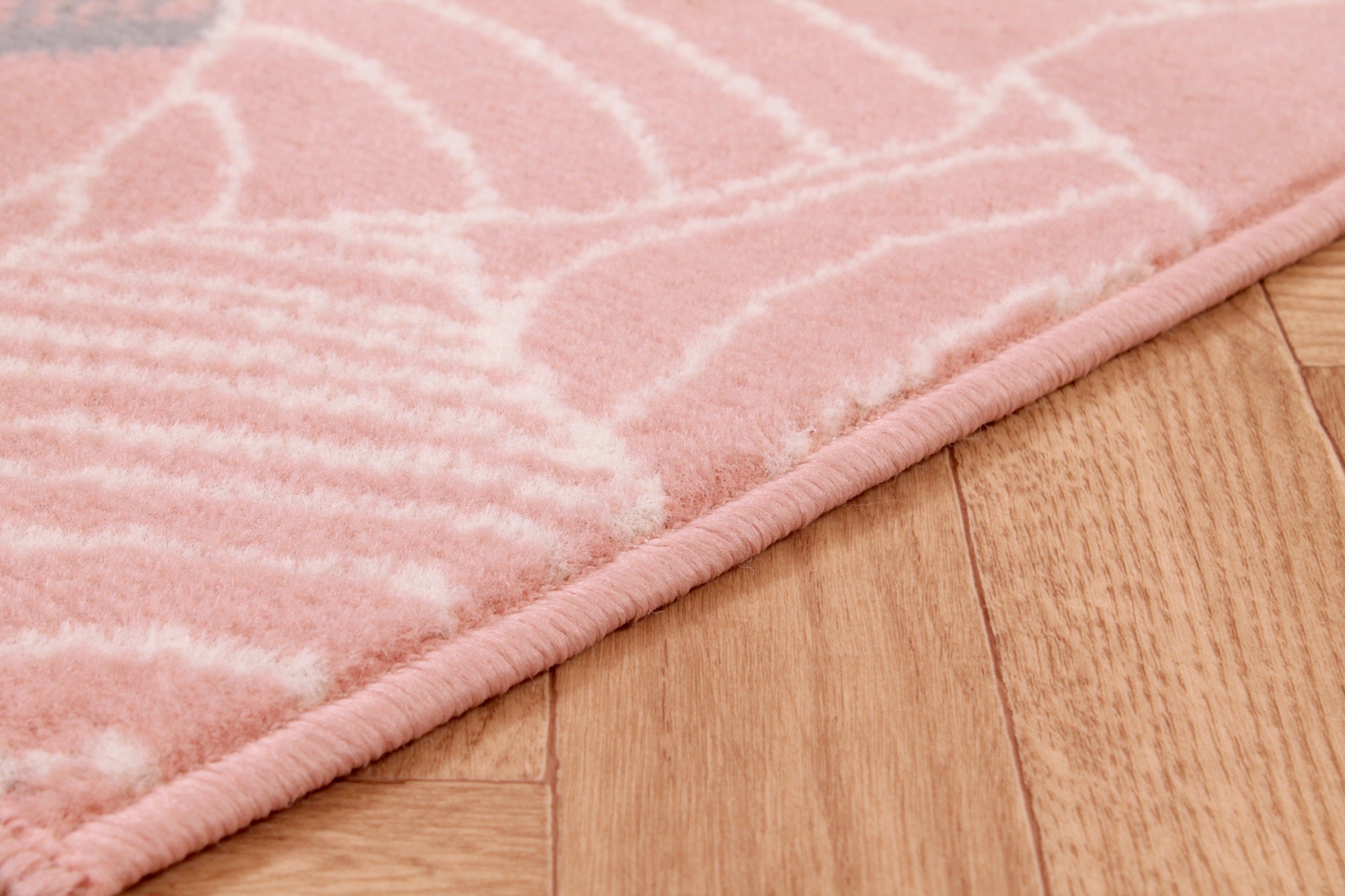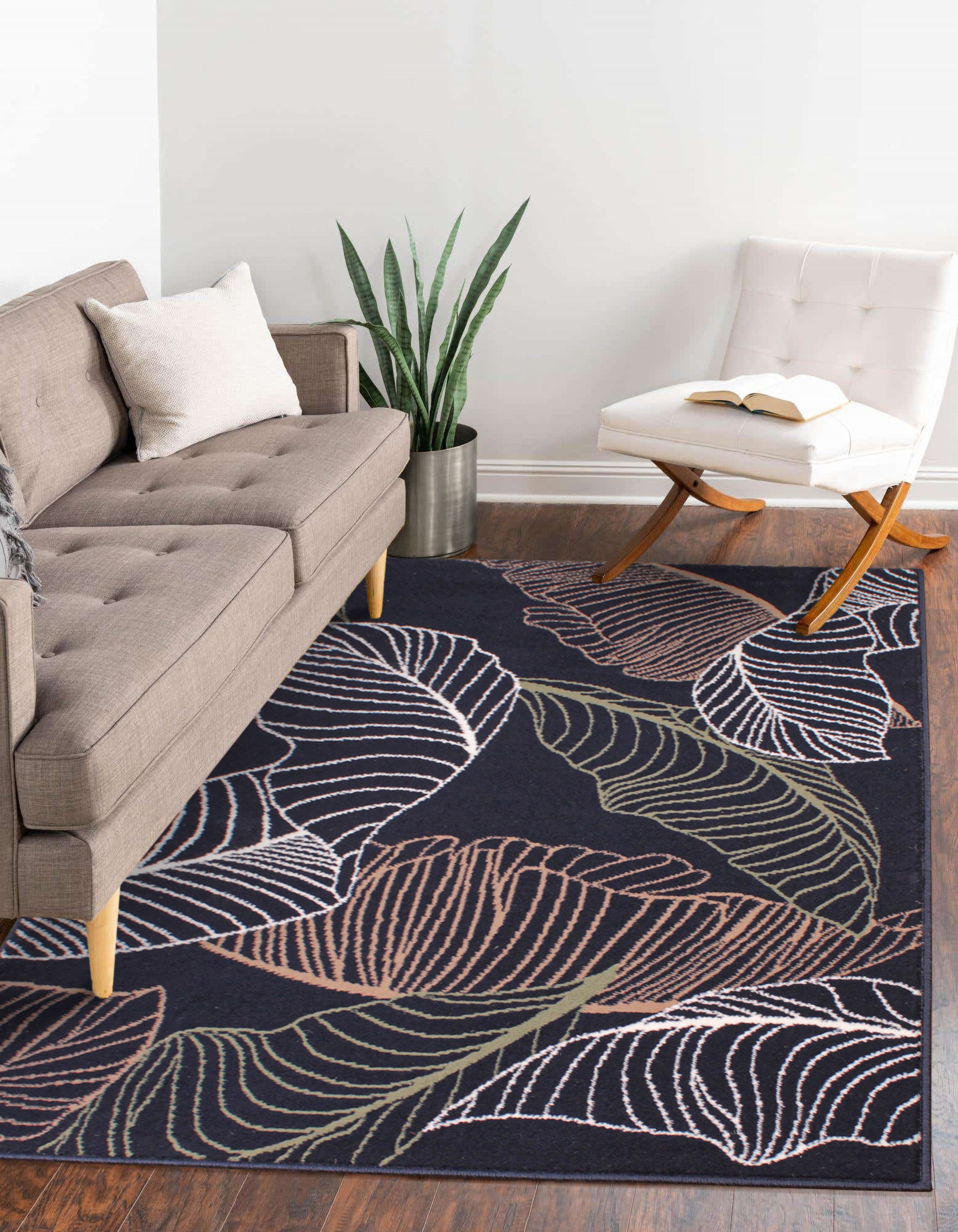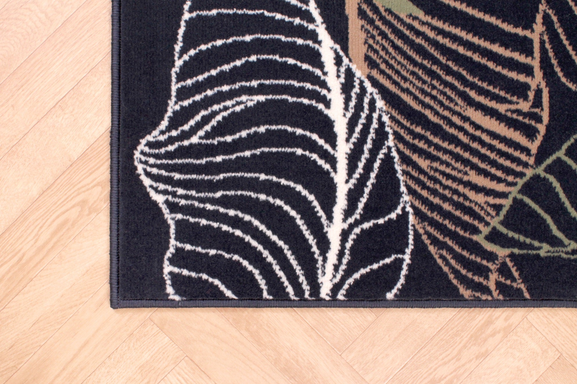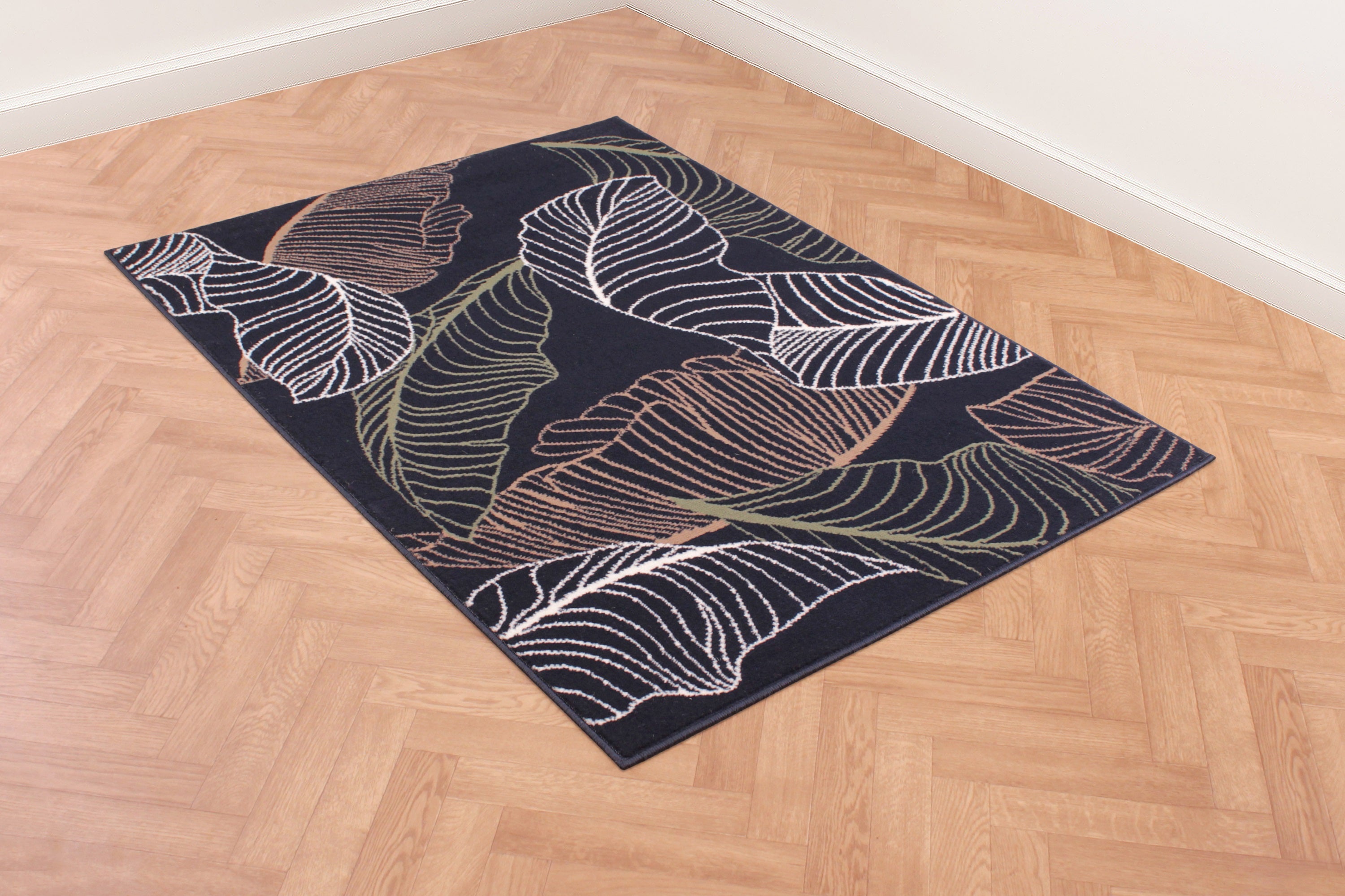 Home Modern Poly Autumn Leaves Rug in Pink, Grey and Navy