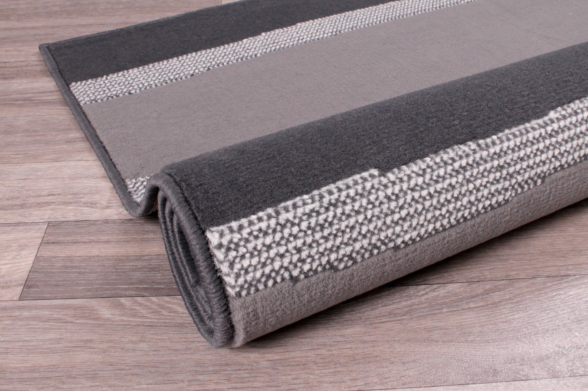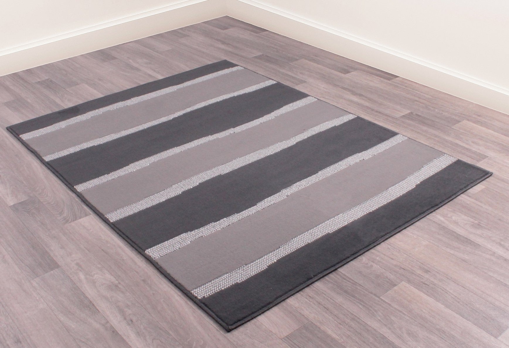 Nova Stripe rugs are part of the Modern Poly collection by Rugstyle. This rug offers a classy colour that can compliment almost any other decor, particularly monochrome themes. As a thin rug, this will work better in high traffic areas as it will lie flush with the floor, and has higher grip for less accidents. The pile of thicker rugs would be ruined in high traffic areas due to large footfall, so a thin rug ensures longevity is not harmed in such environments.
