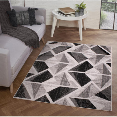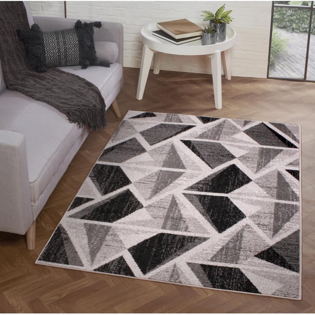 Modern Spirit Abstract Geometric Rug and Hallway Runner in Grey Black Small 80x150 cm