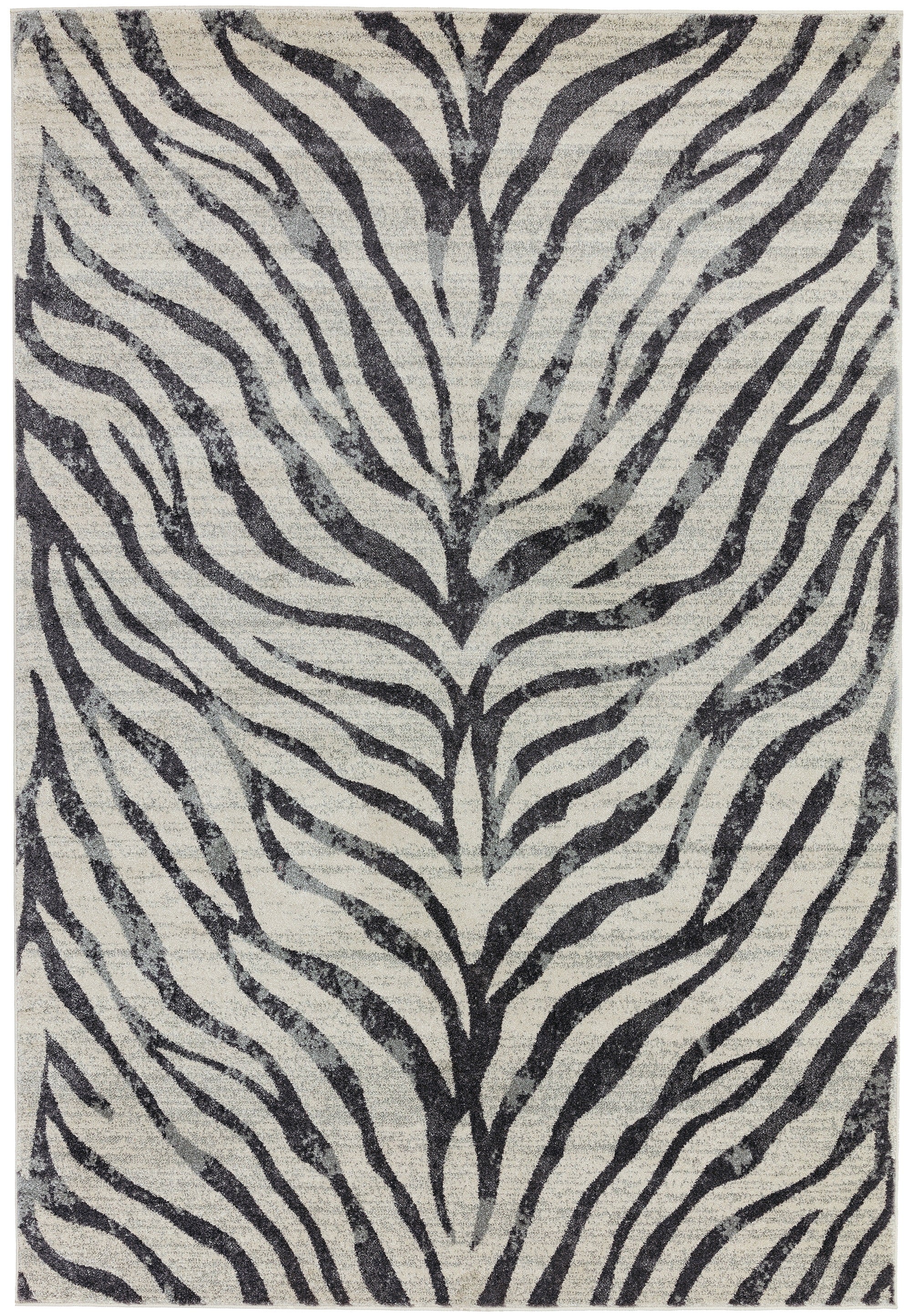 Home Nova NV27 Zebra Skin Stripes Pattern Modern Rug in Black Grey