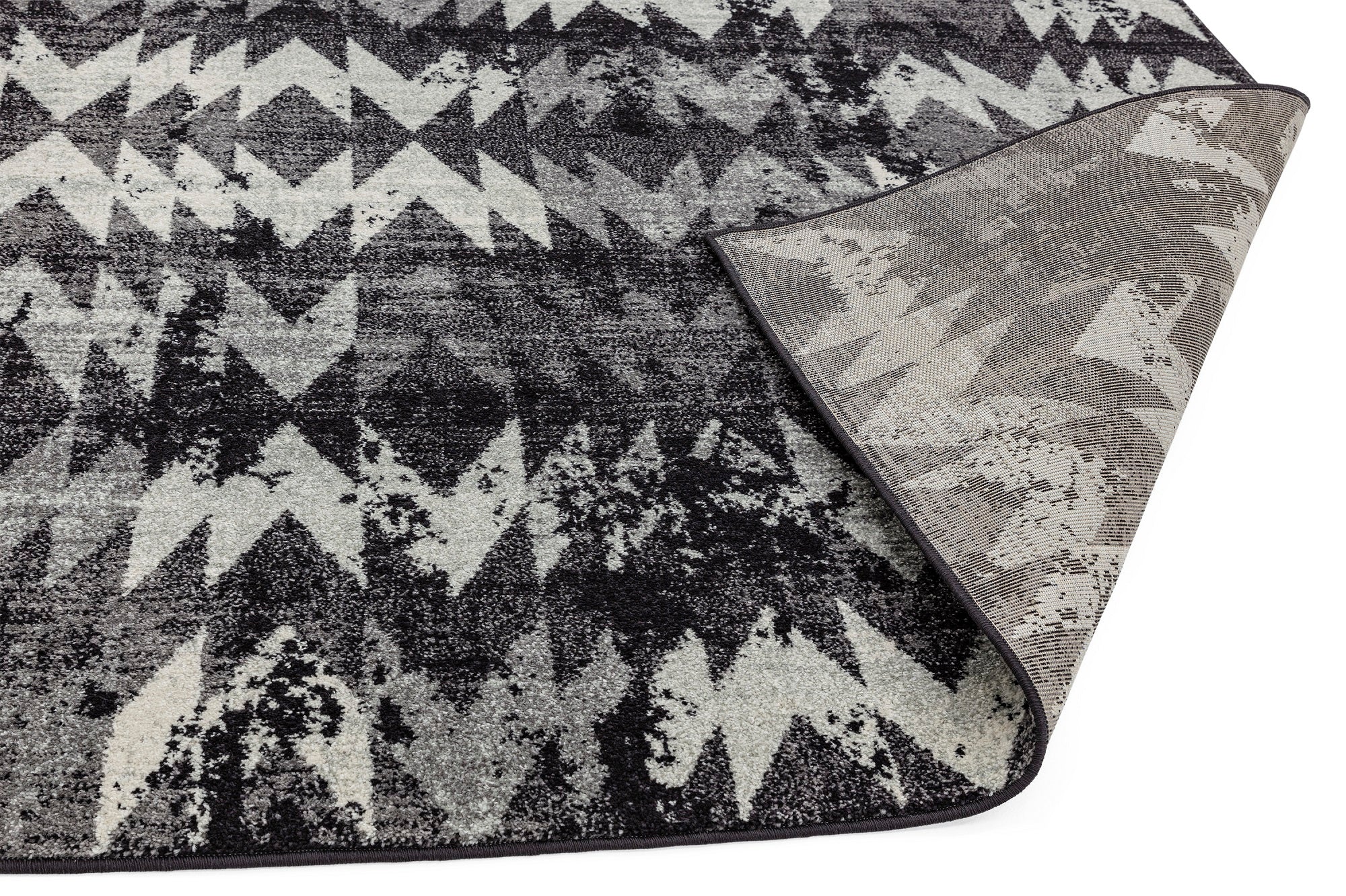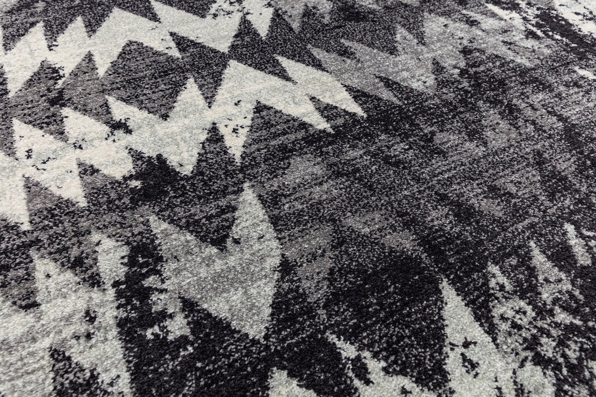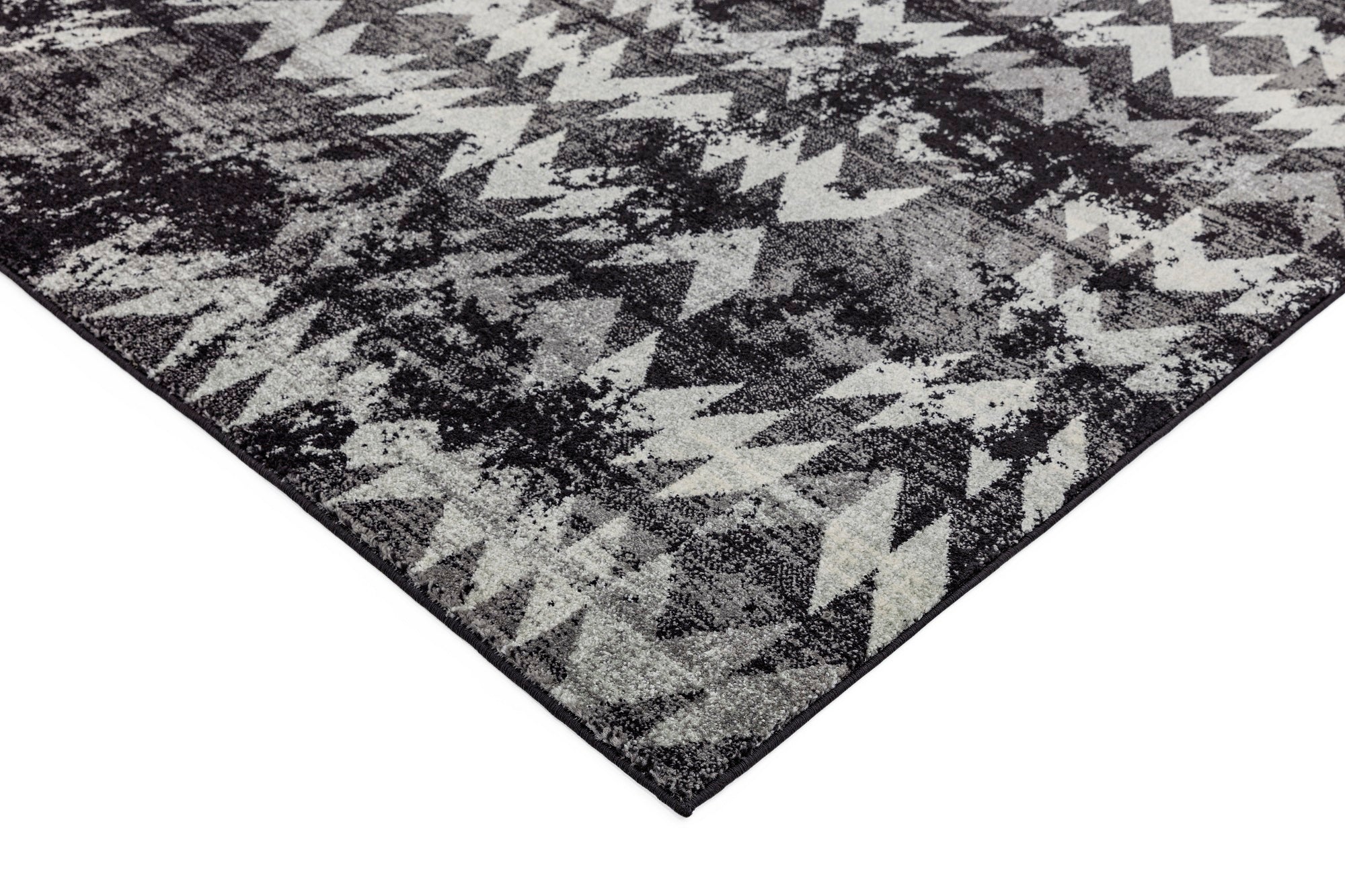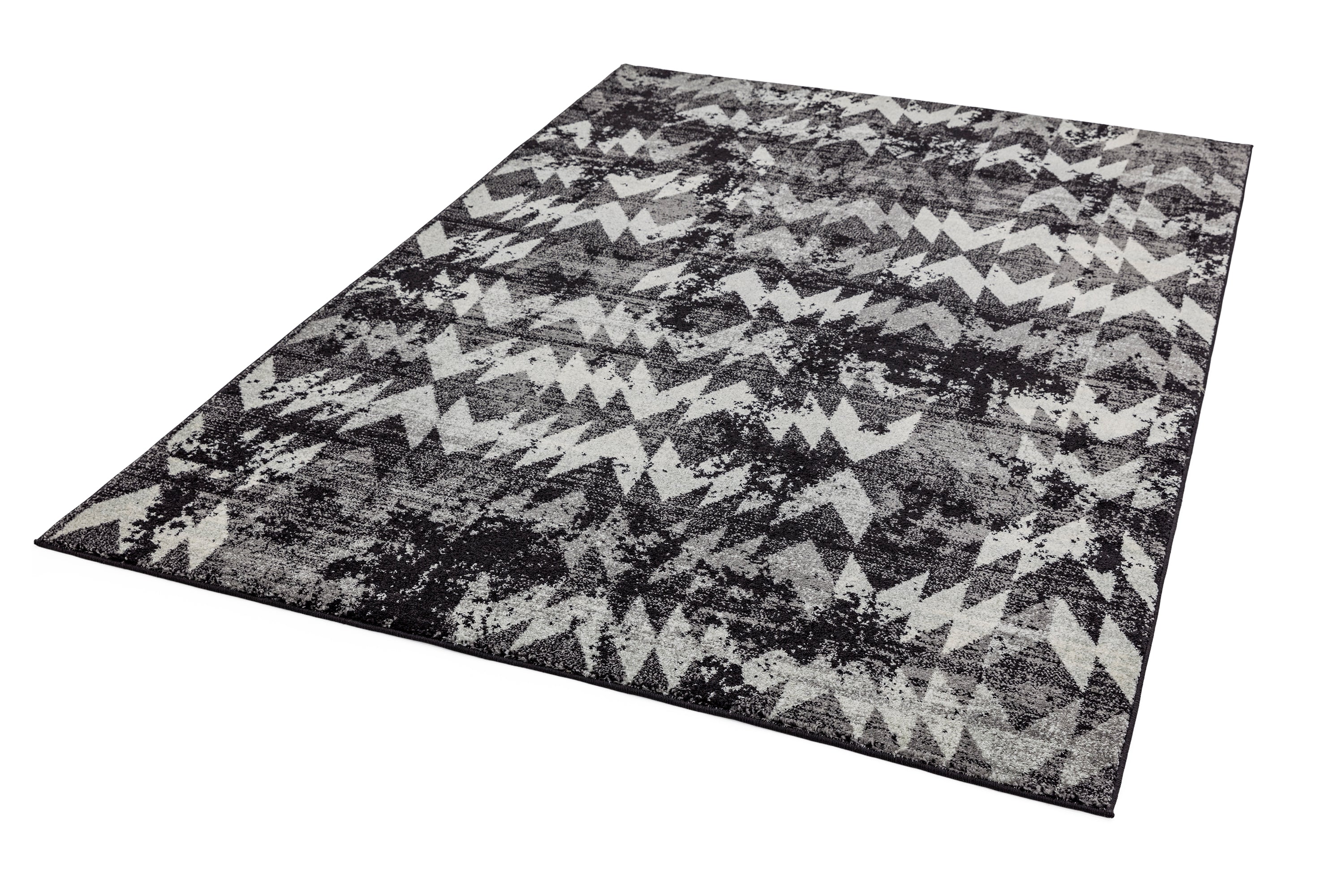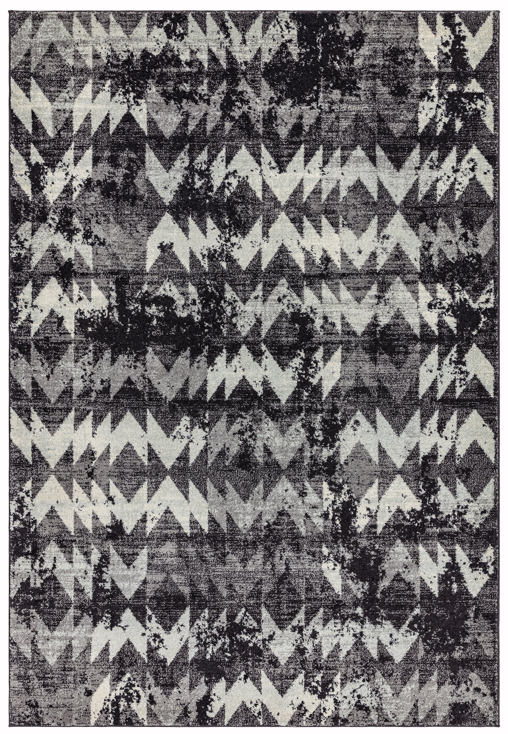 Nova Chevron NV28 rugs in black offer an abstract zig-zag design in on-trend Black monochrome shades which will bring a modern touch to your decor. This distressed design will create a contrast to your living room and bedroom areas. The soft pile has been power loomed with a 100% polypropylene yarn which benefits from being durable and easy to clean. This bold, rectangular rug is available in a range of sizes from small to extra large. Great value machine woven range of colourful and monchromatic modern designs suited to a variety of settings, Nova has a mid height pile of 9mm for enhanced durability.