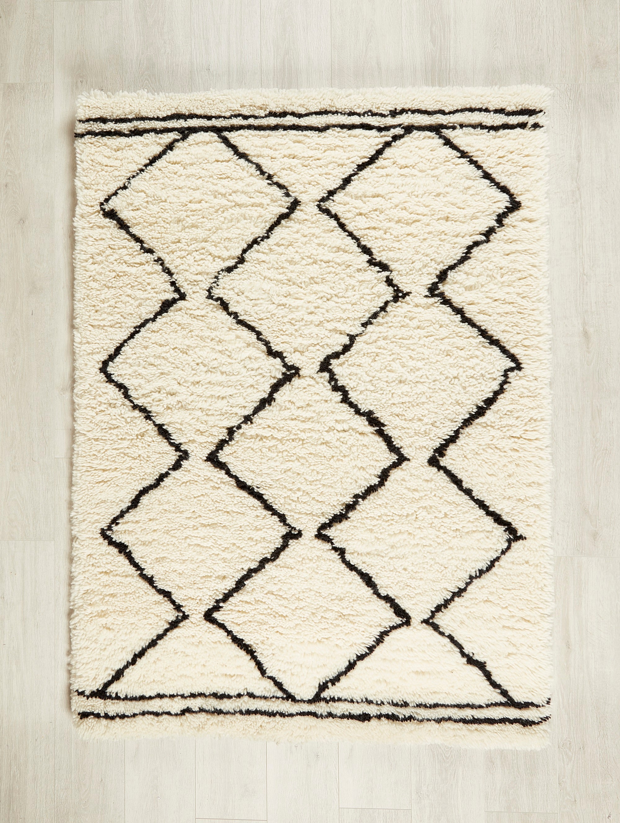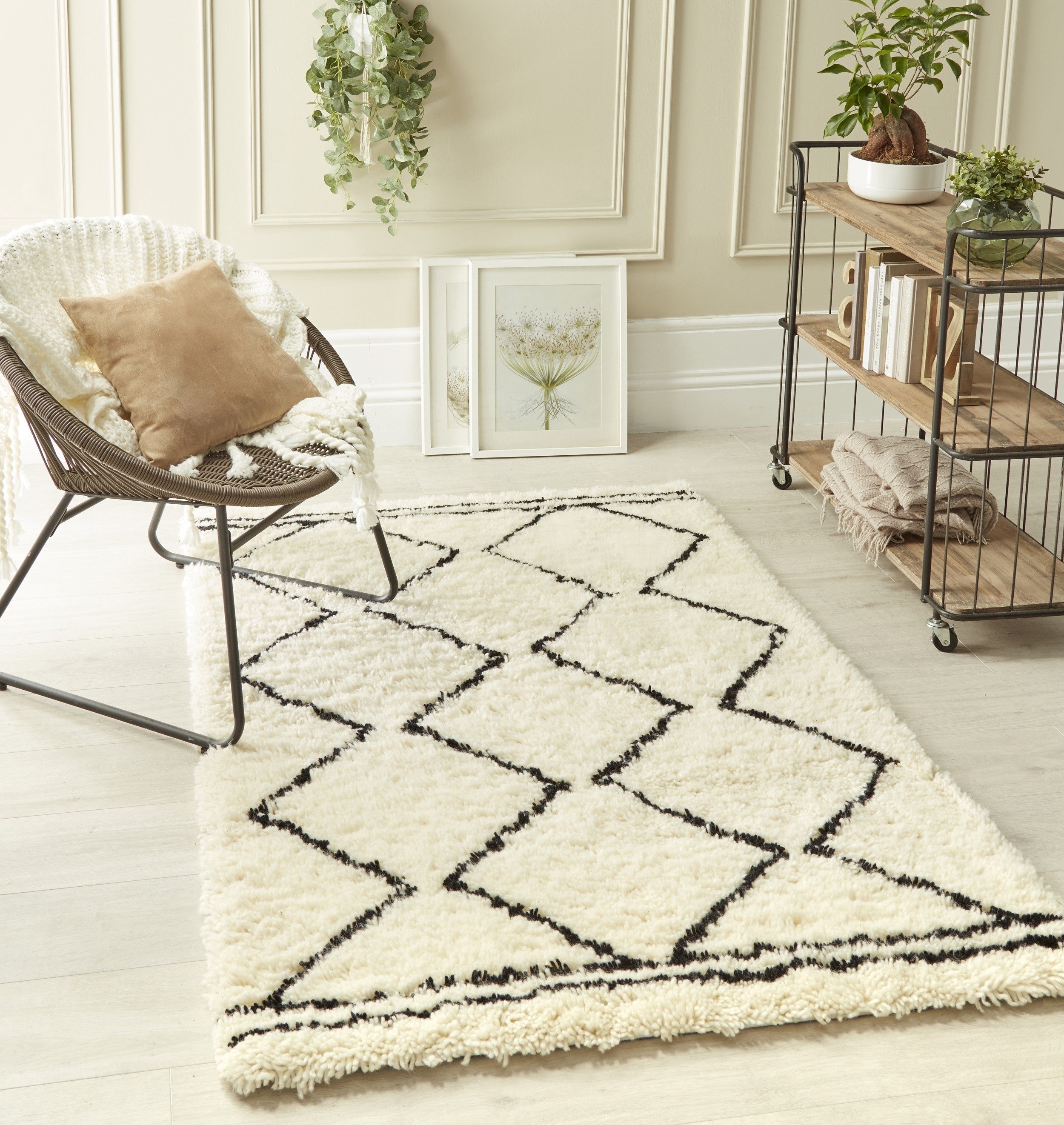 Taking inspiration from Moroccan style, the Origins Berber rug creates a contemporary feel in your interior. Hand-Tufted from 100% wool, the deep fluffy pile provides a luxuriously soft feeling of warmth underfoot. This stunning rug is designed to suit a variety of colour schemes, featuring a cream coloured background with intricate black detailing. Ideal for any bedroom or living areas.