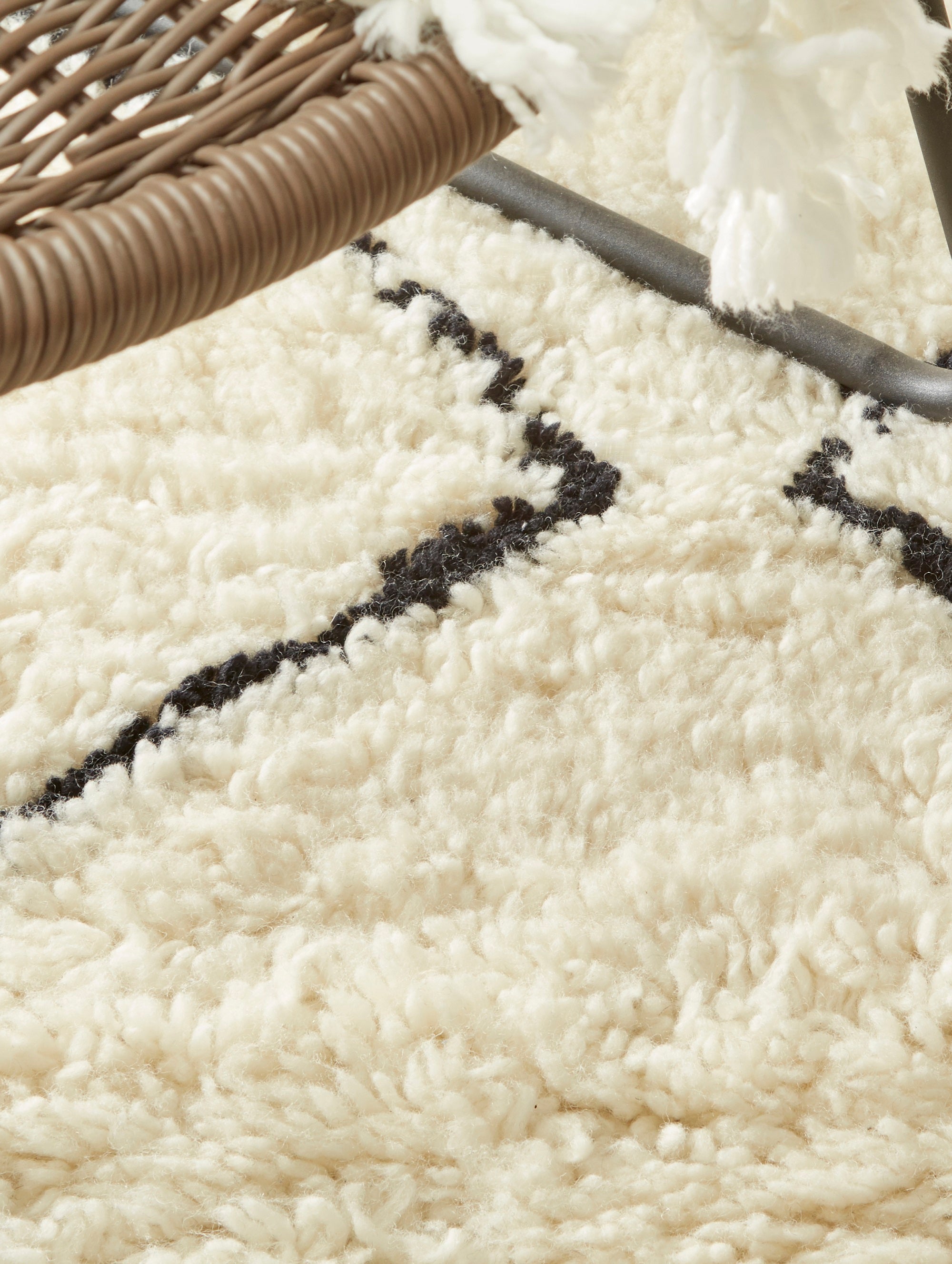 Origins Berber High Quality Soft Hand Made Shaggy Scandi Wool Rug in Cream Black