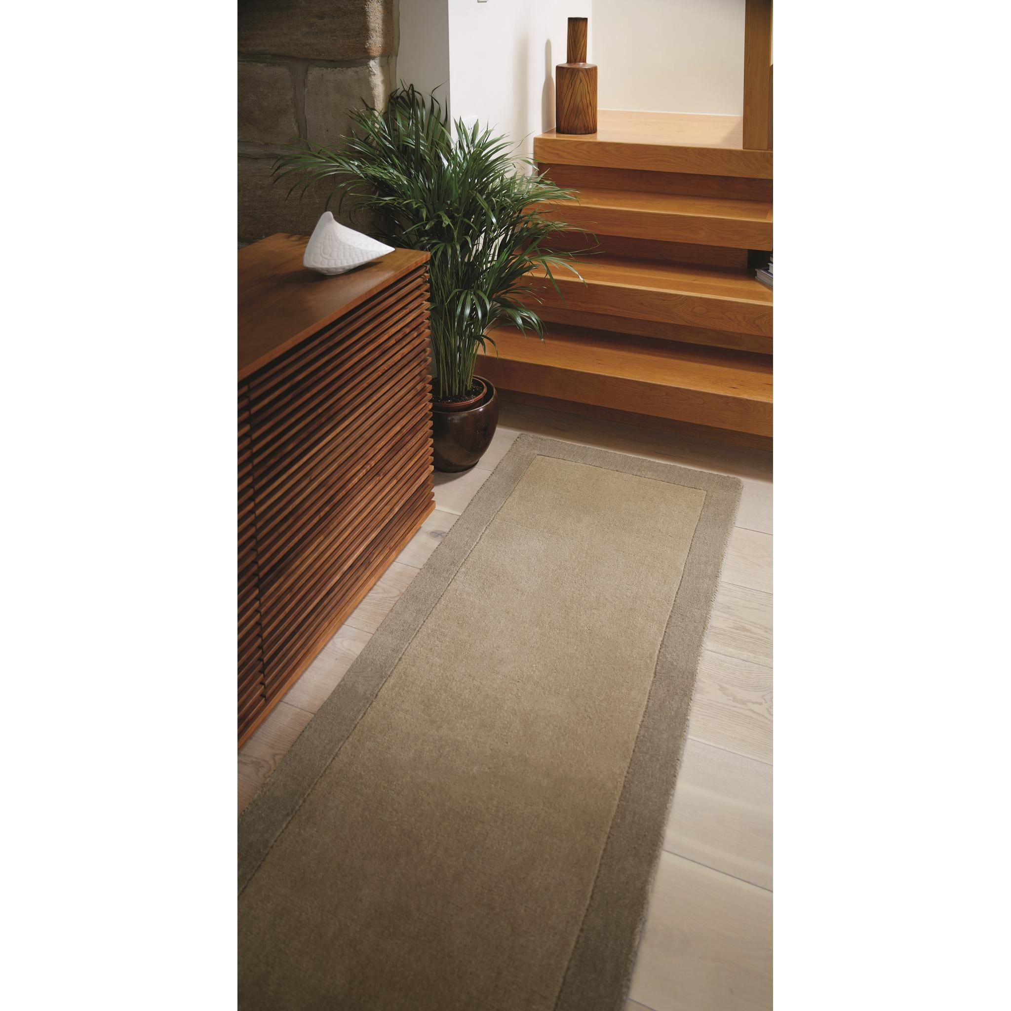Origins Borders Hand Loom Woven Wool Bordered Rug Hallway in Taupe