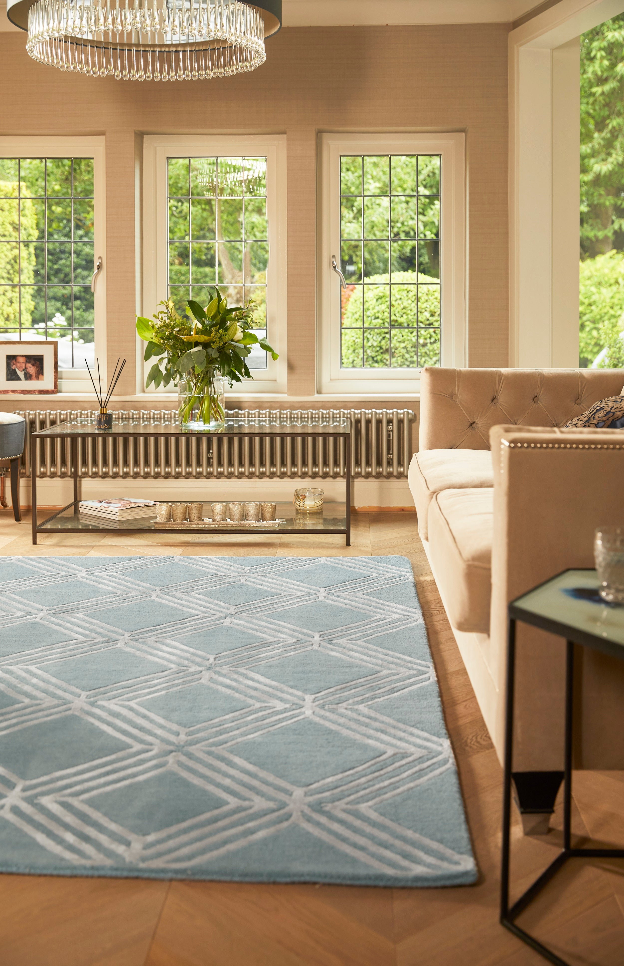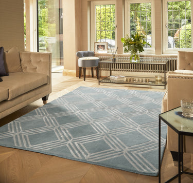 Origins Vienna Rug Wool Viscose Modern Geometric Living Room Quality Hand Made Rug in Blue