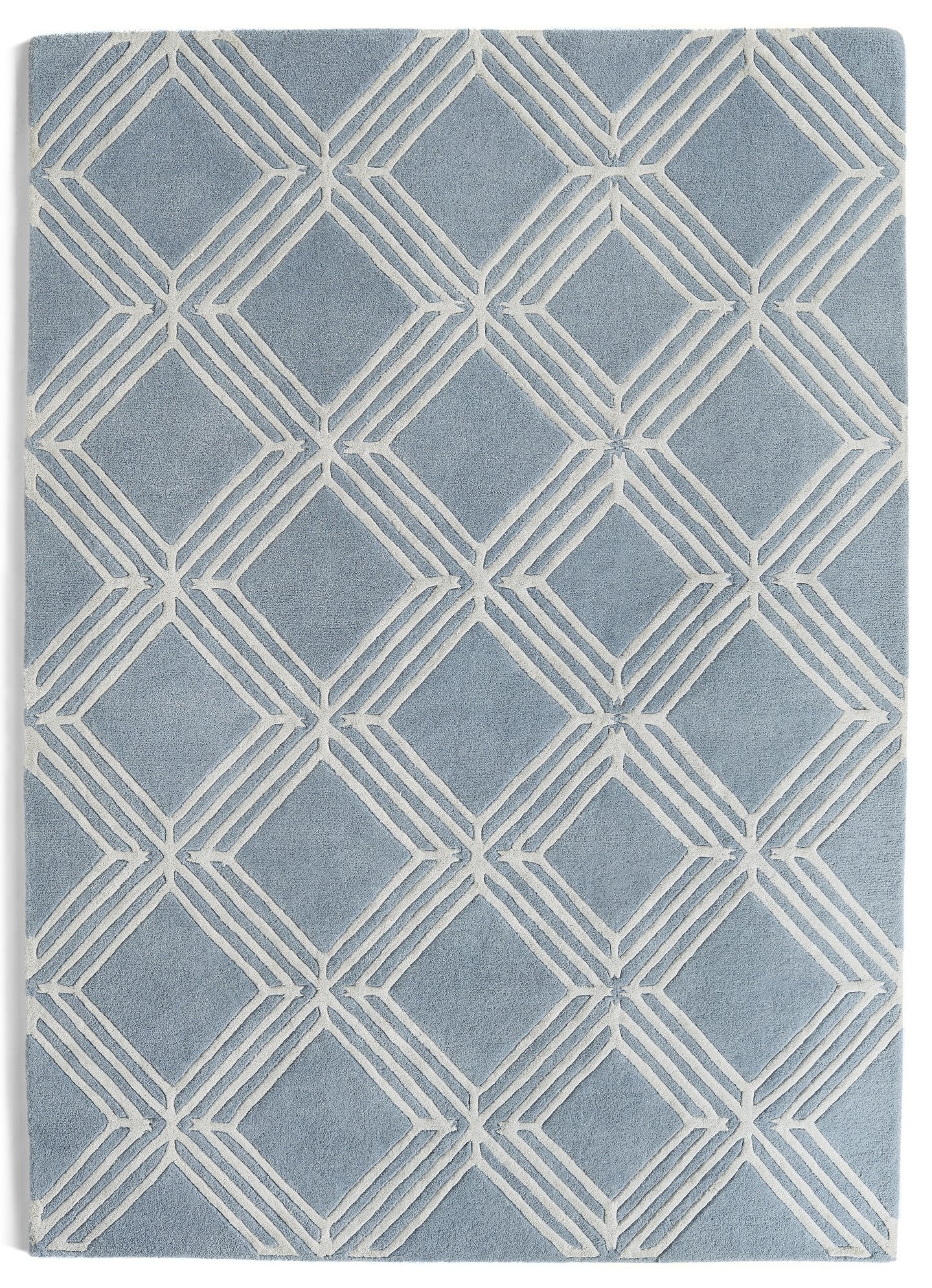 Inspire a sense of style and modernity to your home with the Vienna Geometric Wool Rug in a blue colourway. Featuring a geometric pattern in soothing tones of beige on a soft pile. This rug has been hand tufted in India with a mixture of wool and viscose for high durability, resilience, comfort and easy maintenance. Place it in your living room, bedroom or hallway, this rug is sure to become a focal point for your living space. 3250g per square metre. Available in a wide range of sizes from small to large. Bespoke sizes available.