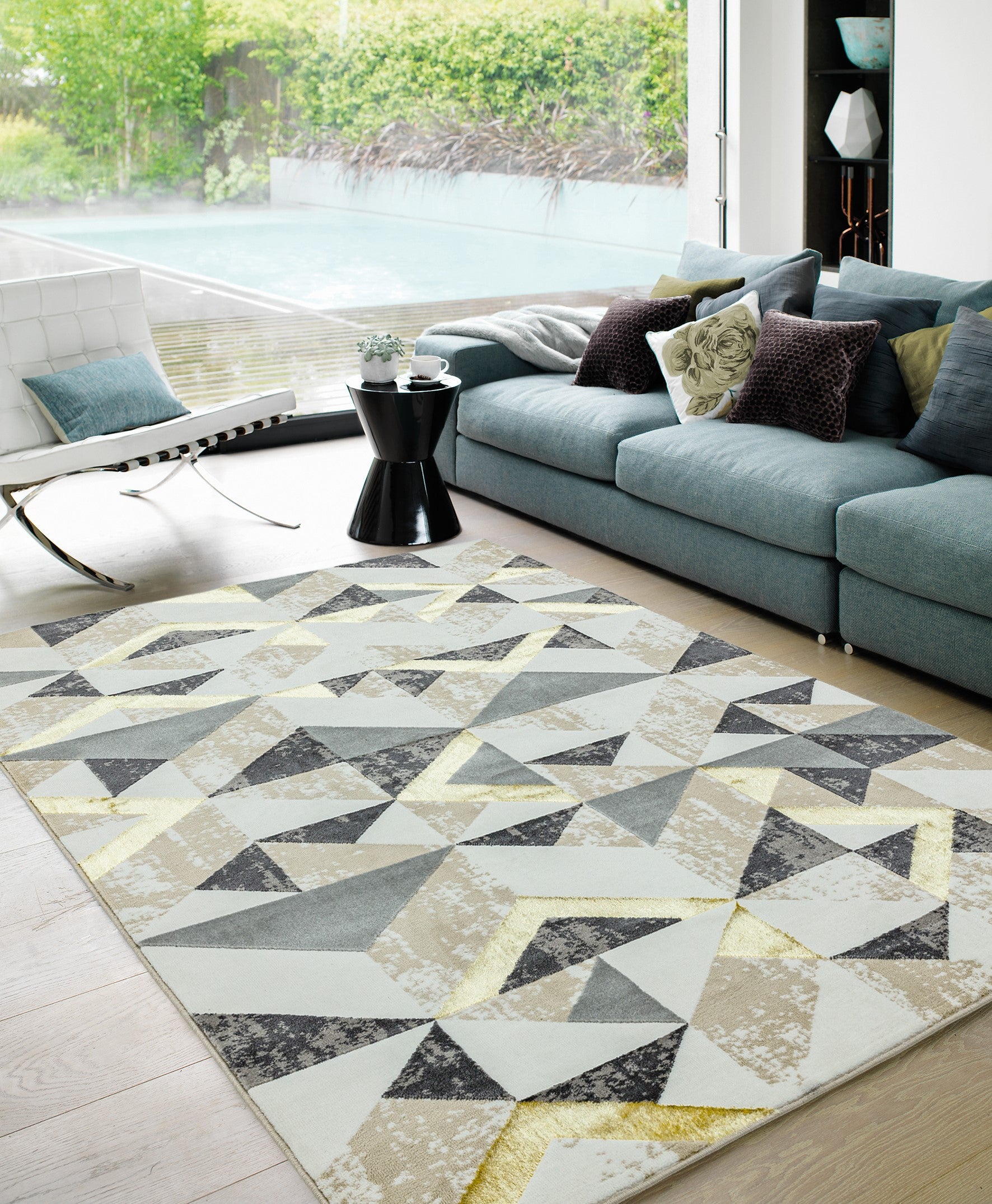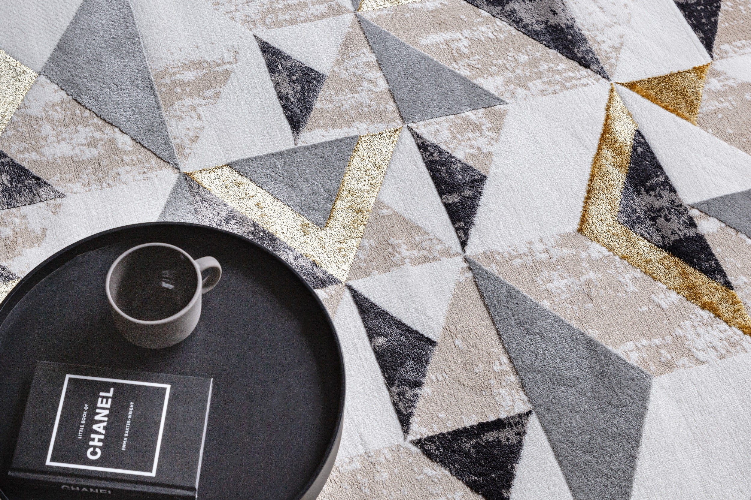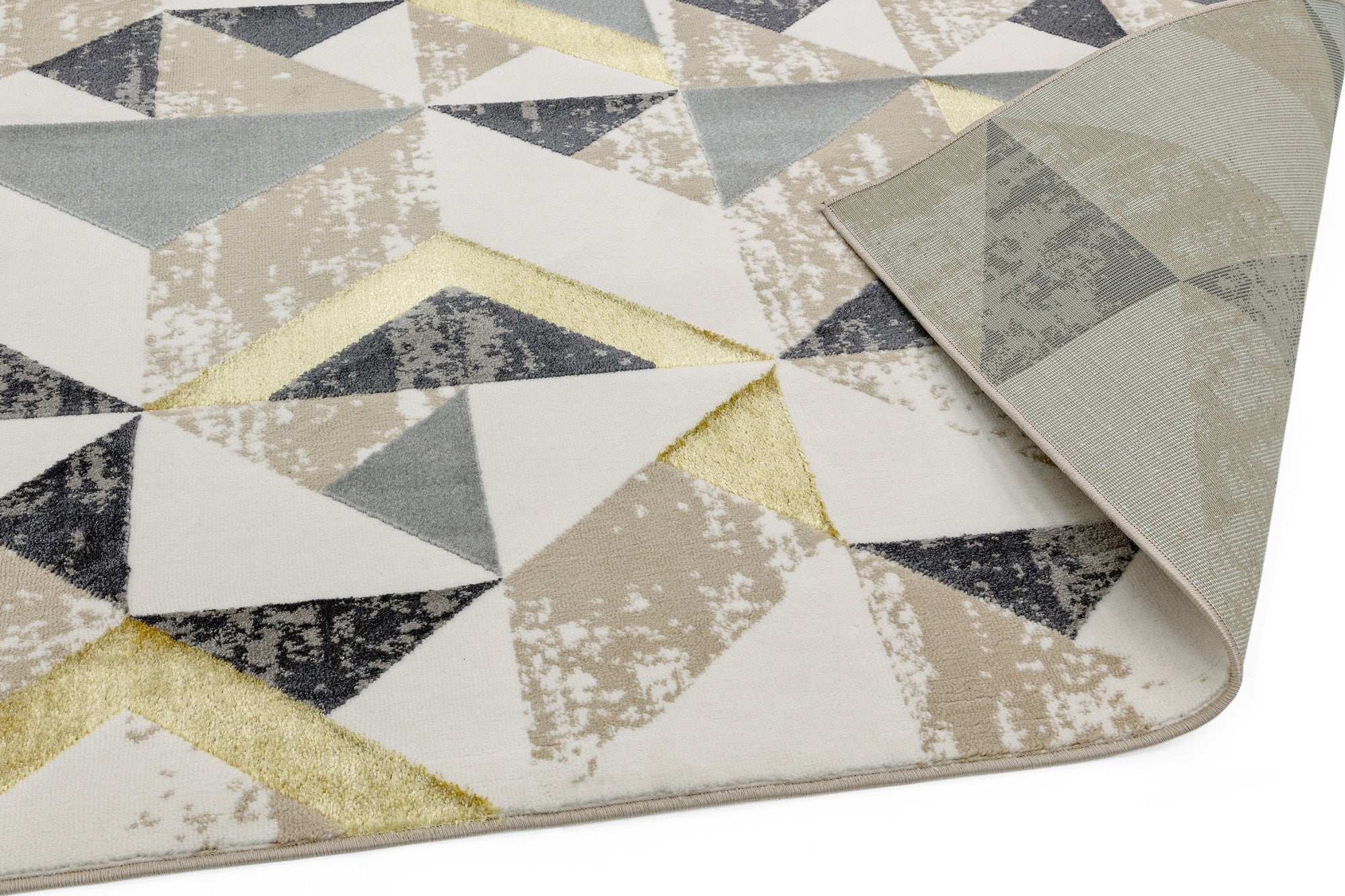 Add a splash of colour in your home with our new Orion collection. The Flag OR09, OR10 and OR11 rug creates a modern and contemporary vibe with its metallic Silver colours and geometric design. A perfect addition to your living room or bedroom areas for those wanting to create an eye-catching focal point. Made with 70% Polypropylene 30% Polyester yarn which benefits from being super soft, easy to clean, anti shed and very hard-wearing. This rug has a pile height of 10mm. Available in small to large sizes. Eye-catching metallic gold and silver accents and a shiny finish enrich distinctive abstract and geometric designs across the Orion collection.