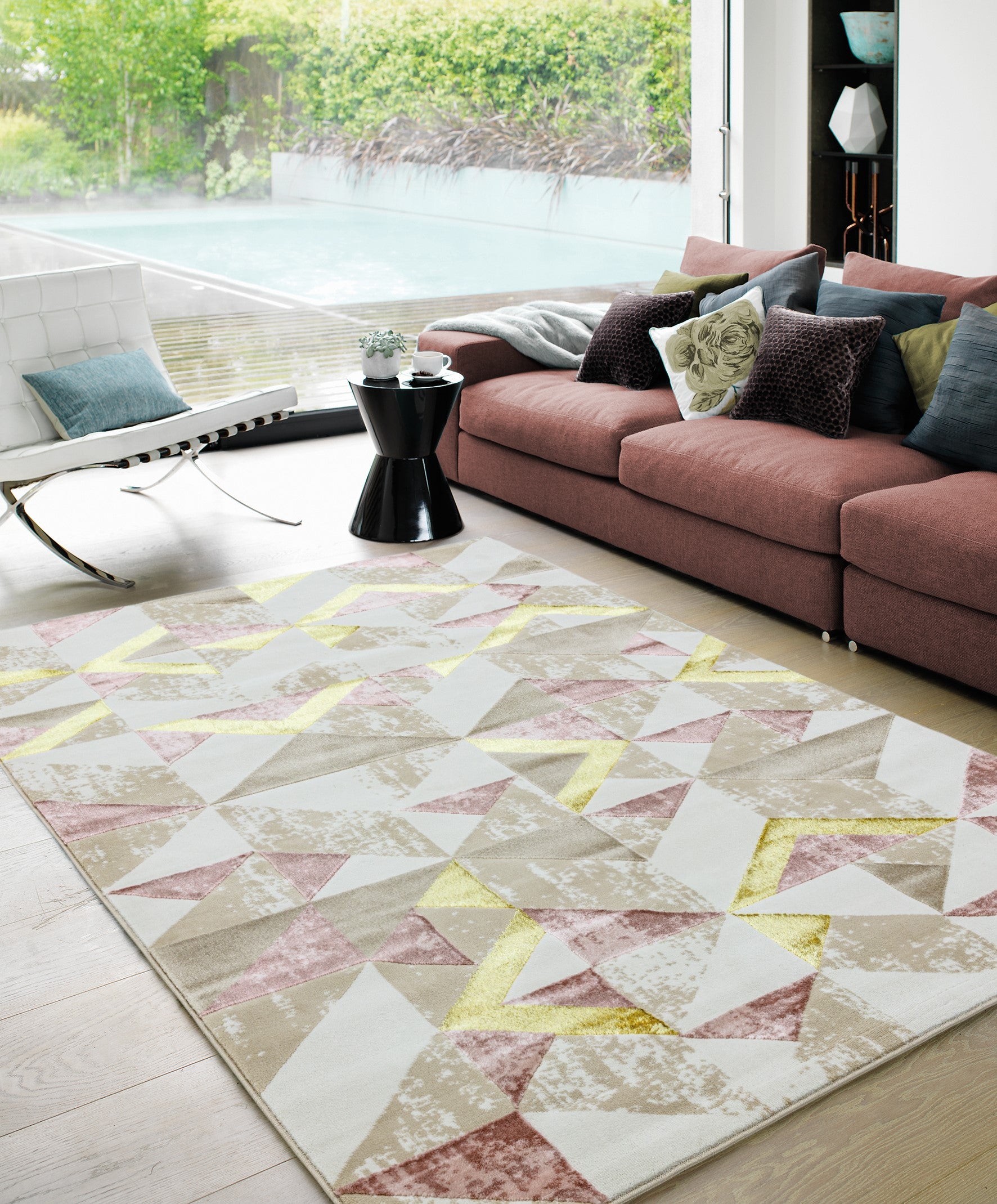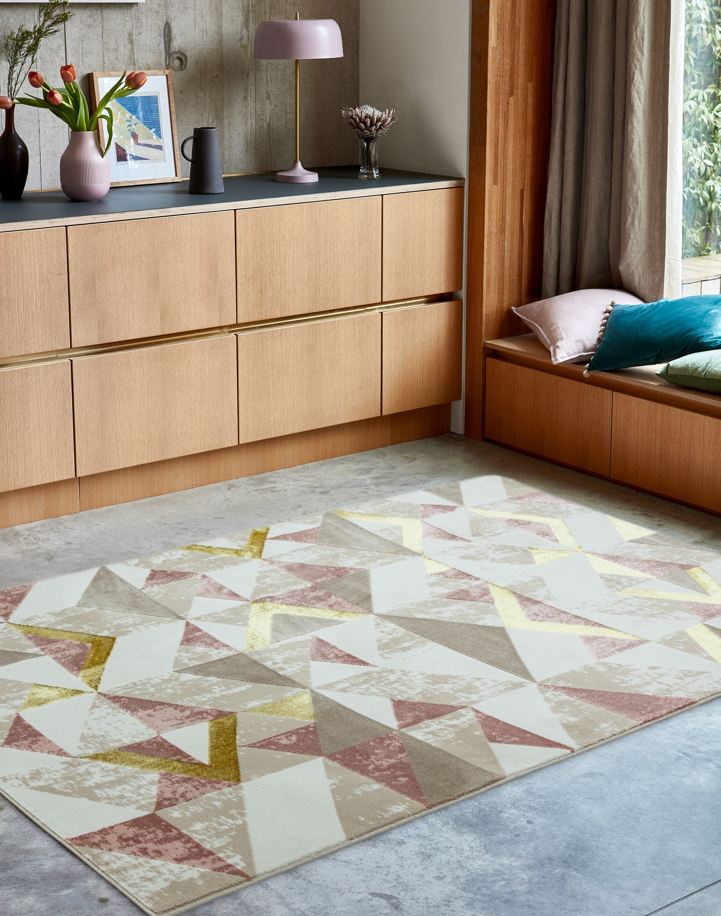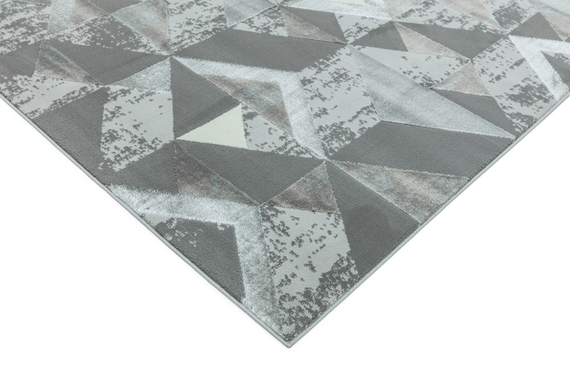 Add a splash of colour in your home with our new Orion collection. The Flag OR09, OR10 and OR11 rug creates a modern and contemporary vibe with its metallic Silver colours and geometric design. A perfect addition to your living room or bedroom areas for those wanting to create an eye-catching focal point. Made with 70% Polypropylene 30% Polyester yarn which benefits from being super soft, easy to clean, anti shed and very hard-wearing. This rug has a pile height of 10mm. Available in small to large sizes. Eye-catching metallic gold and silver accents and a shiny finish enrich distinctive abstract and geometric designs across the Orion collection.