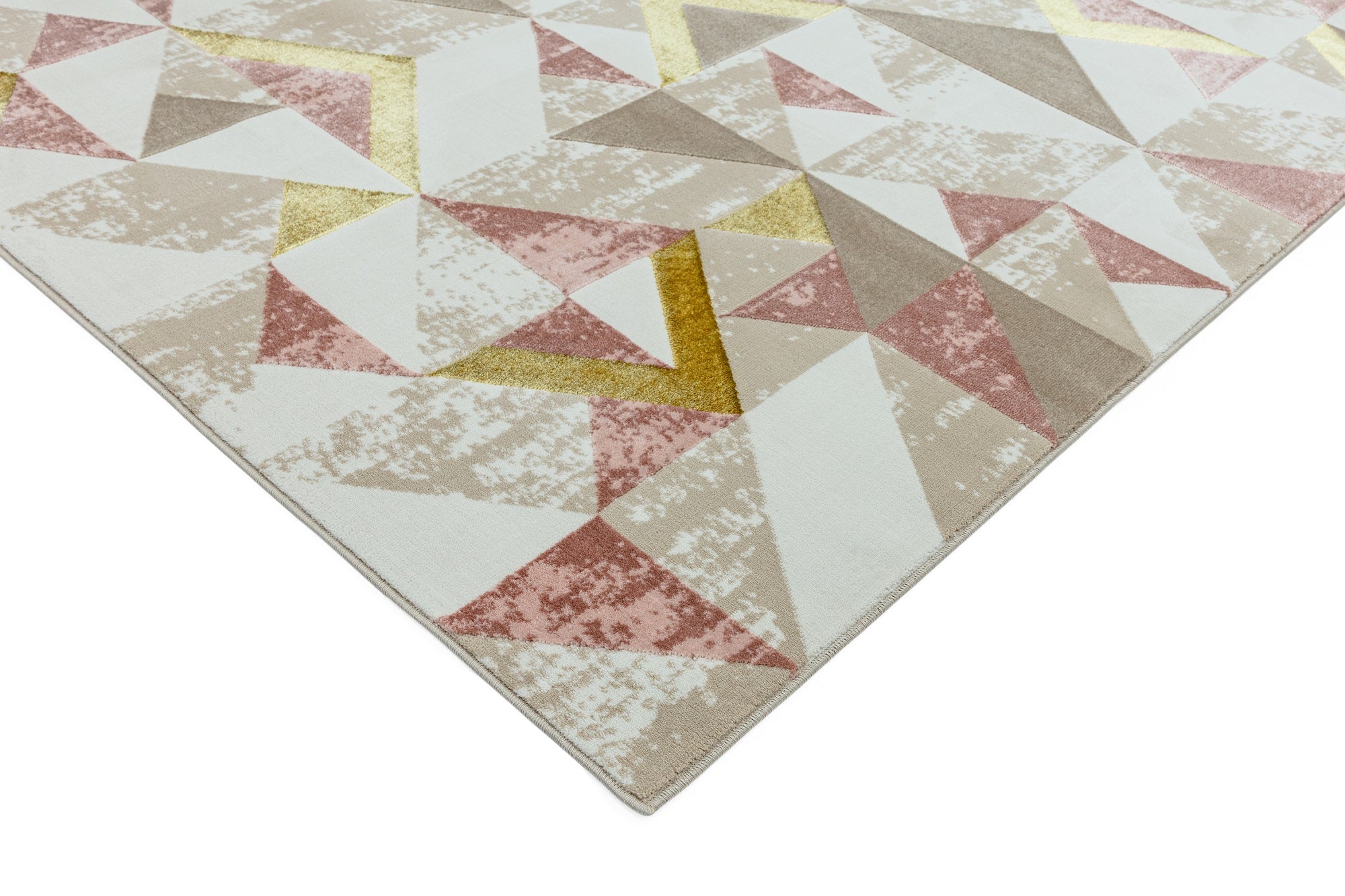 Home Orion Flag Modern Geometric Metallic Rug in Silver, Pink and Grey