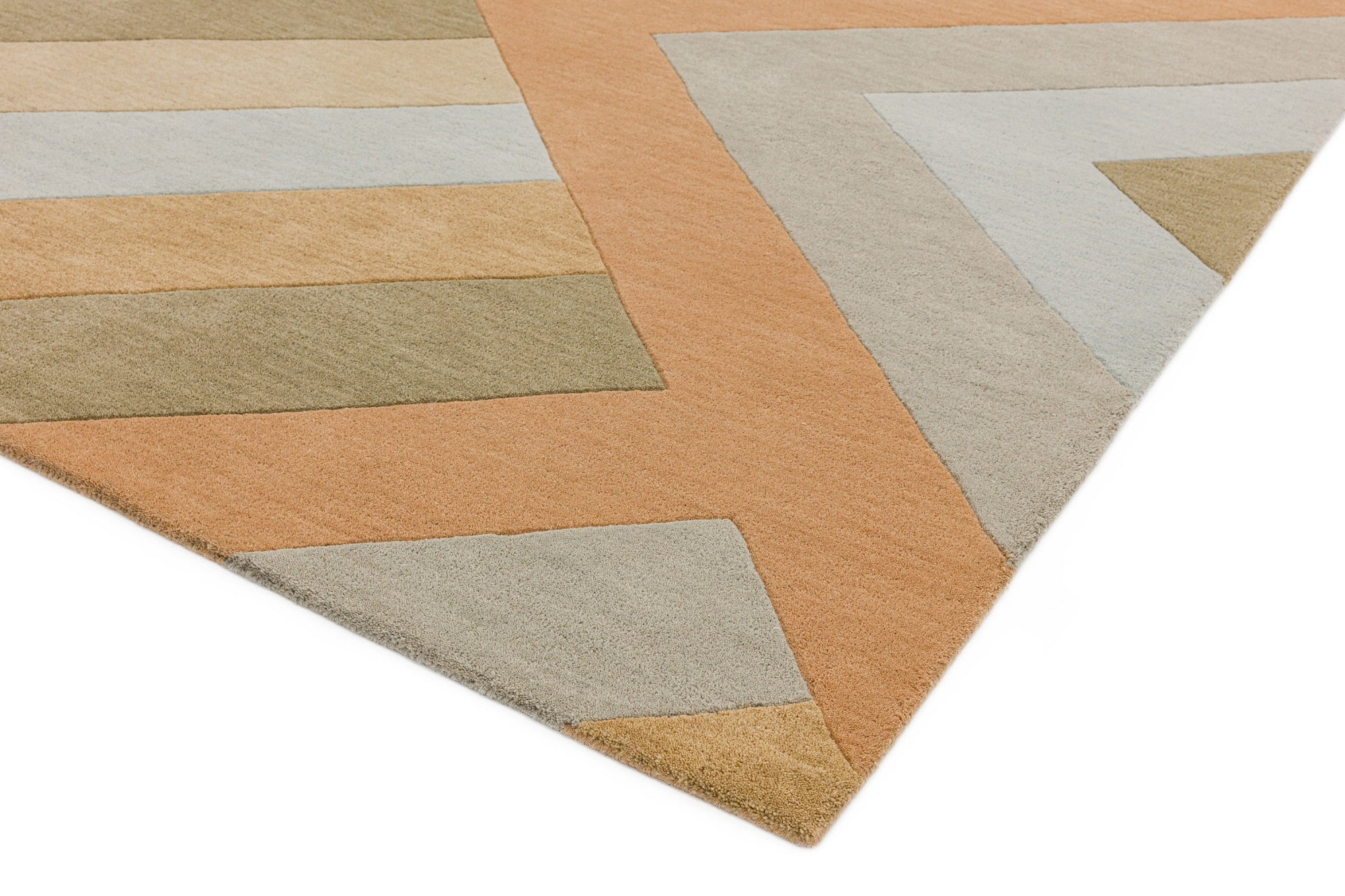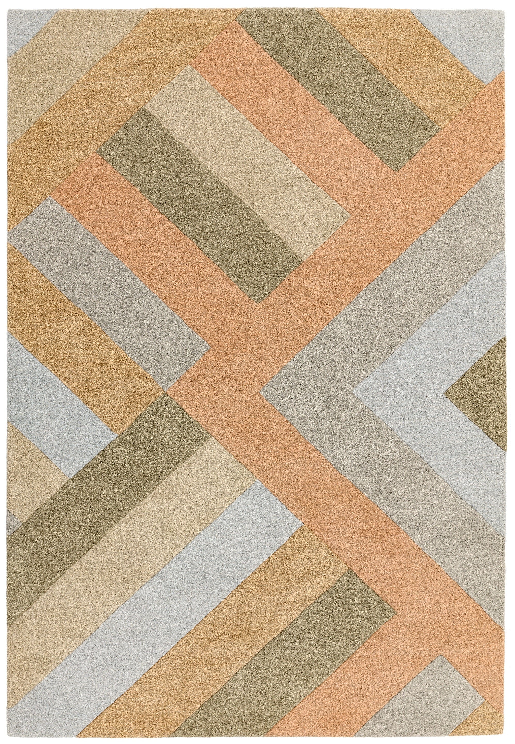 Change your living space according to your mood and give your room an instant update with the Reef Big Zig rugs RF03. Hand tufted using a 100% Wool yarn, this unique design displays a geometric motif. The bright, playful shades used in this luxuriously soft rug are harmonised with complimentary coral and beige colours, creating a bold design, without being a sensory overload. Pile weight 2200g.