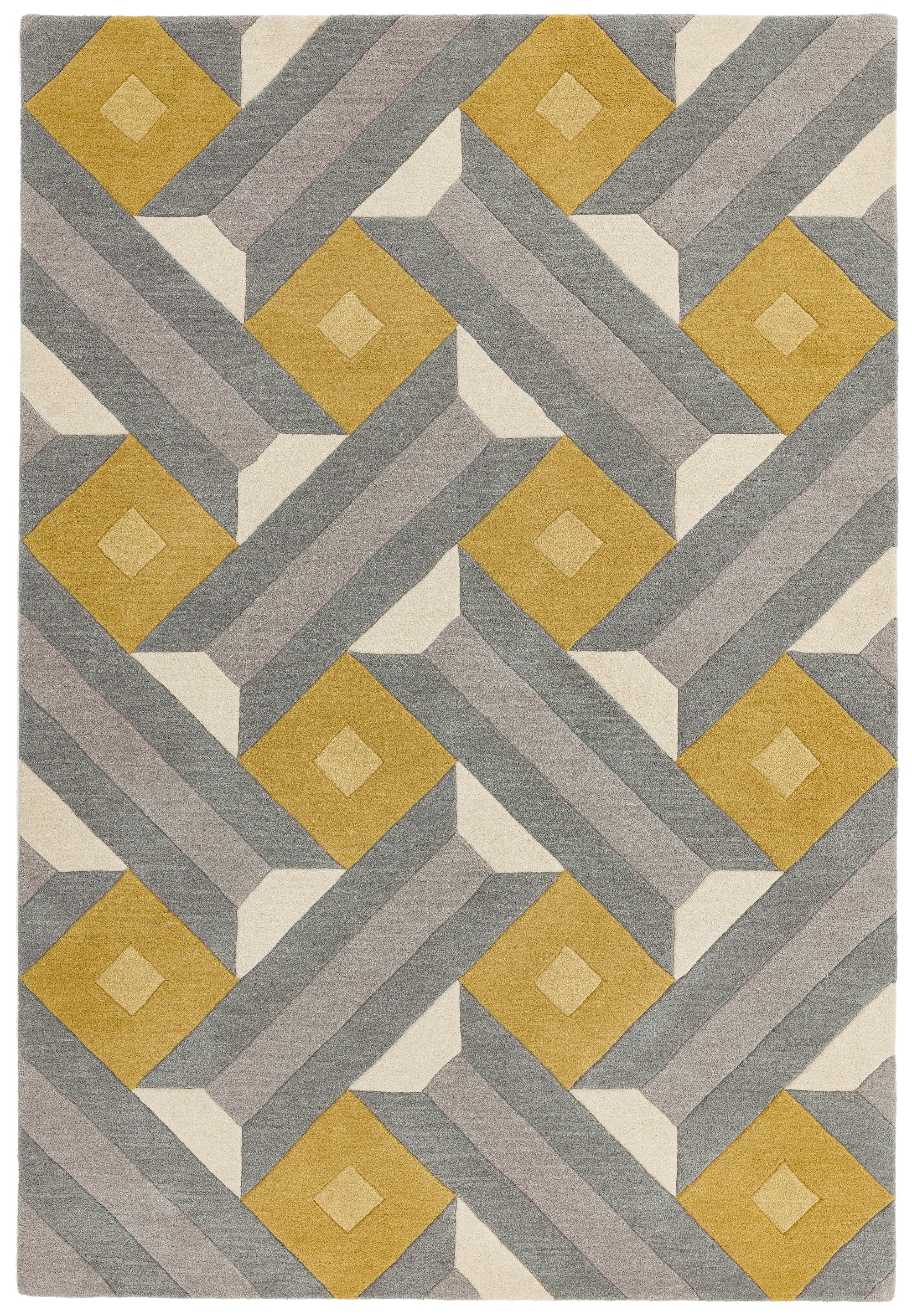 Reef Motif RF01 Geometric Pattern Hand Tufted Rug Hallway Runner in Ochre Grey