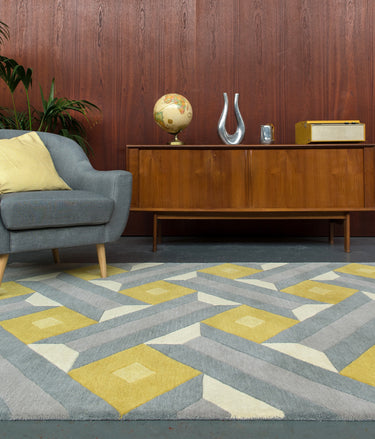 Change your living space according to your mood and give your room an instant update with a Reef Motif rug RF01. Hand tufted using a 100% Wool yarn, this unique design displays a geometric motif. The bright, playful shades used in this luxuriously soft rug are harmonised with complimentary grey and ochre colours, creating a bold design, without being a sensory overload. Pile weight 2200g.