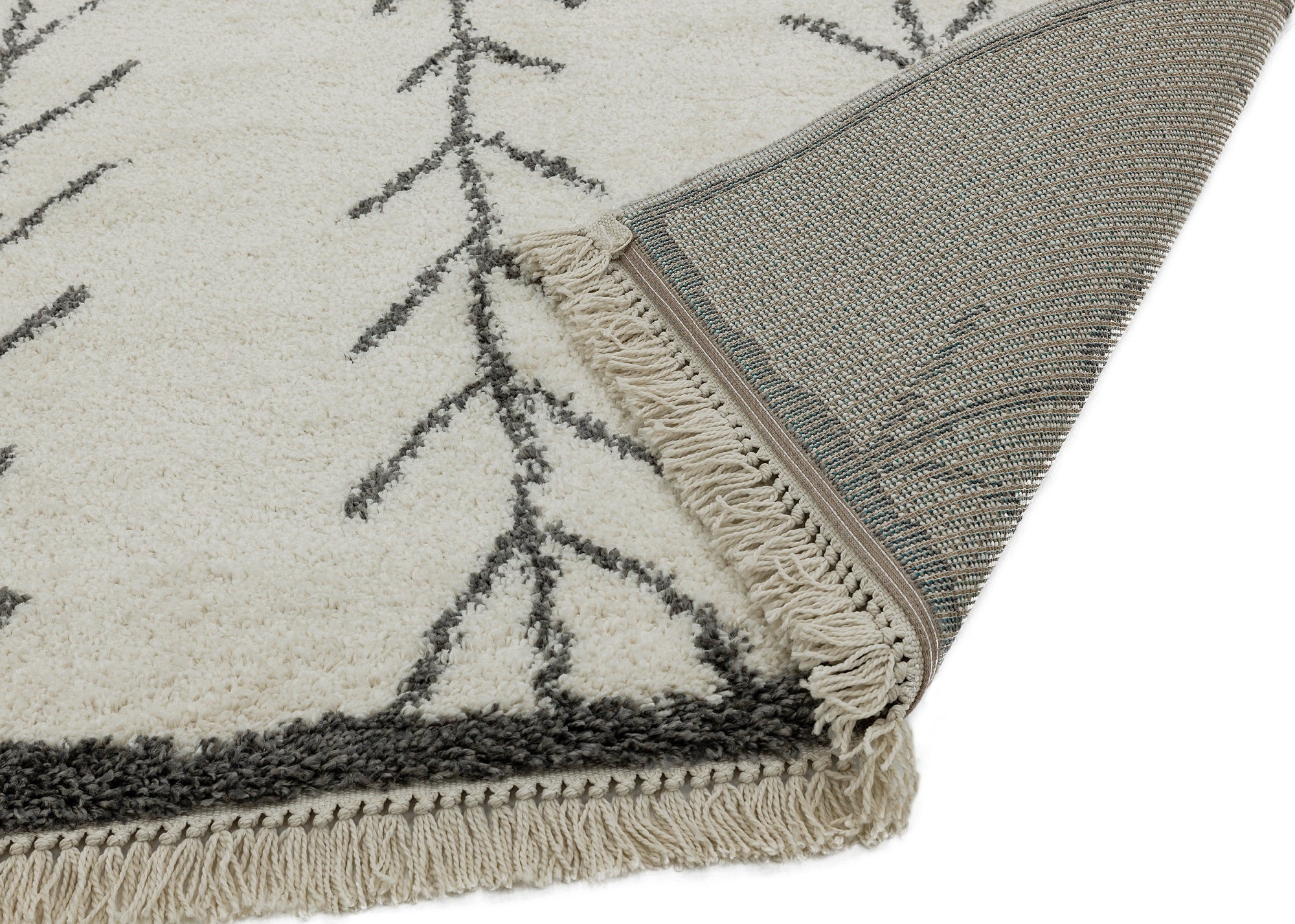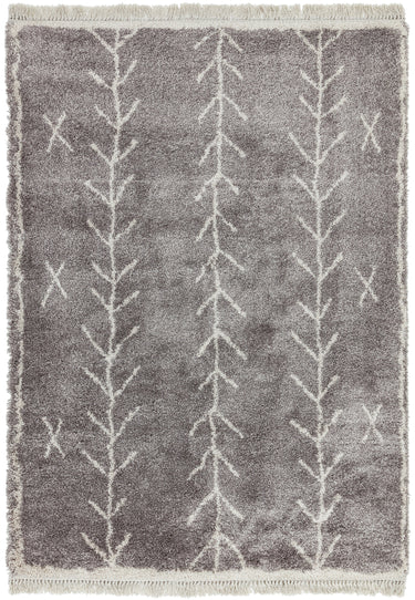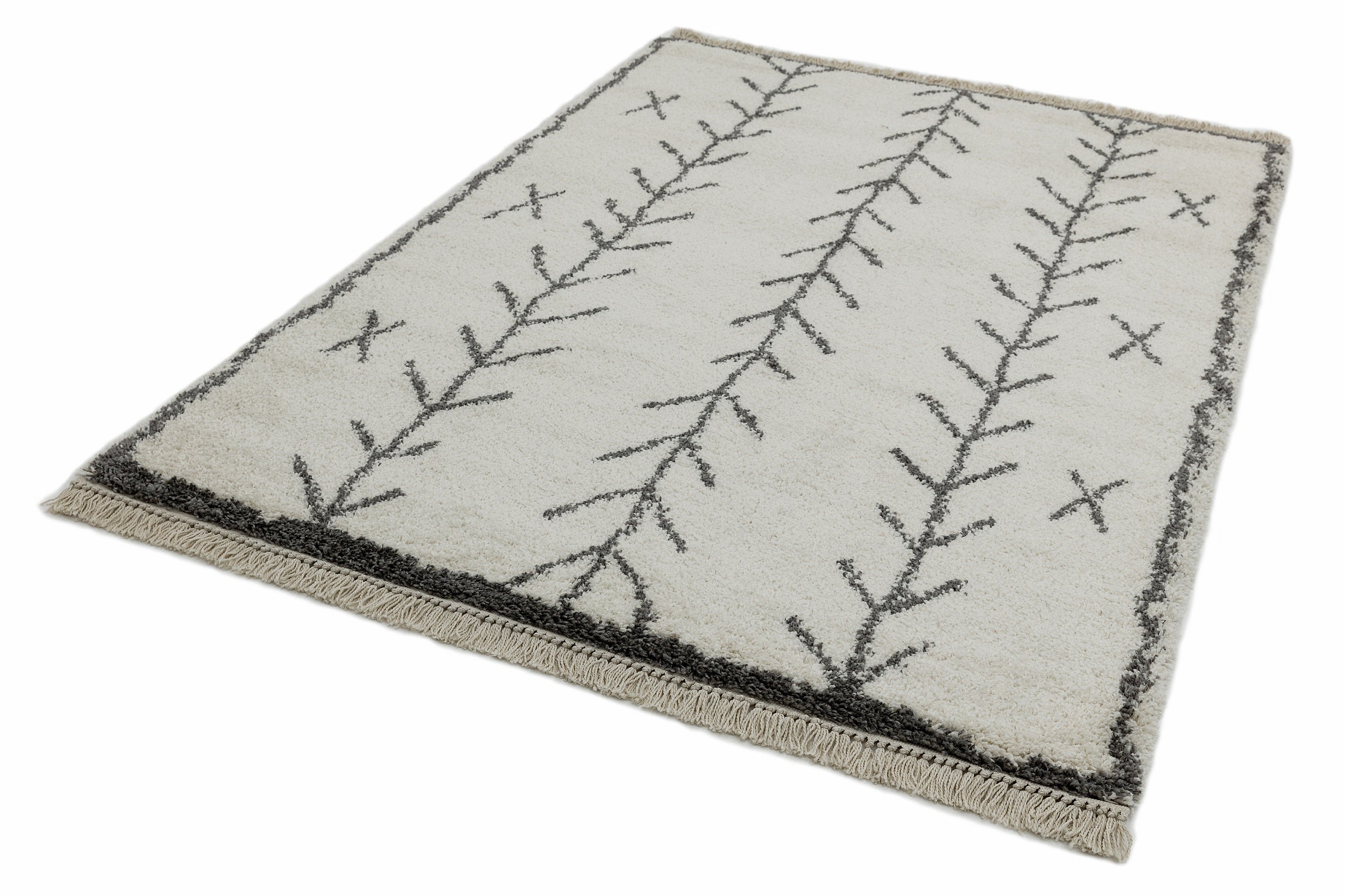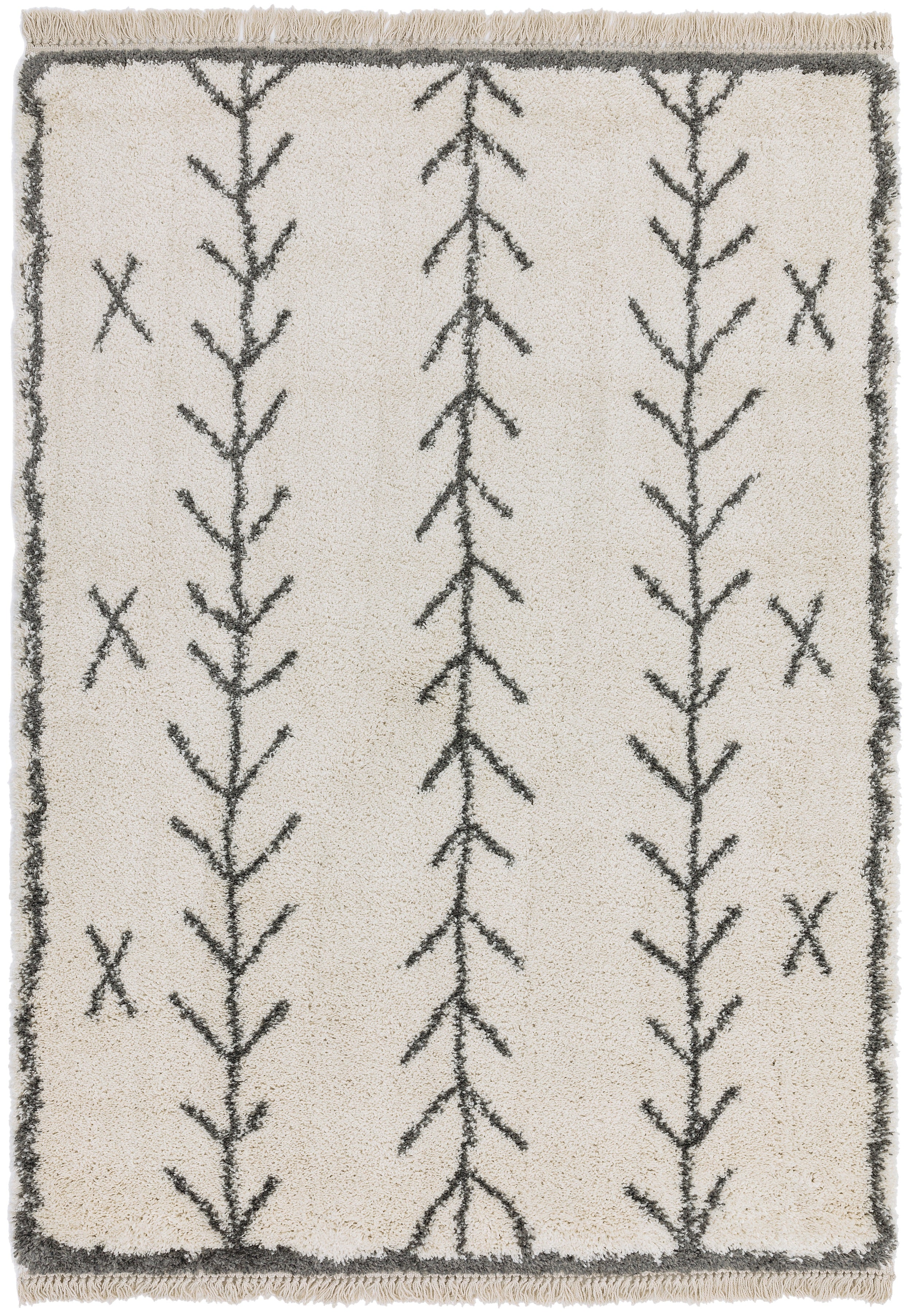 Rocco Moroccan Tribal Berber Arrow Soft Shaggy Rug in Cream, Grey