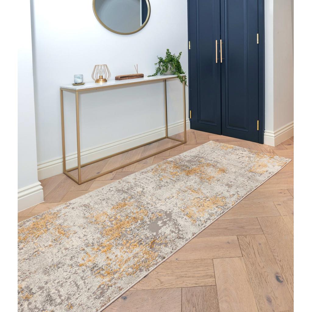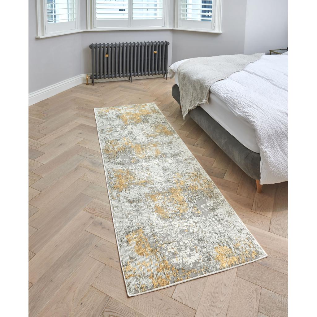 Rossa ROS03 Modern Abstract Hallway Runner Rug in Silver Gold 80x240 cm (2'8''x7'10'')