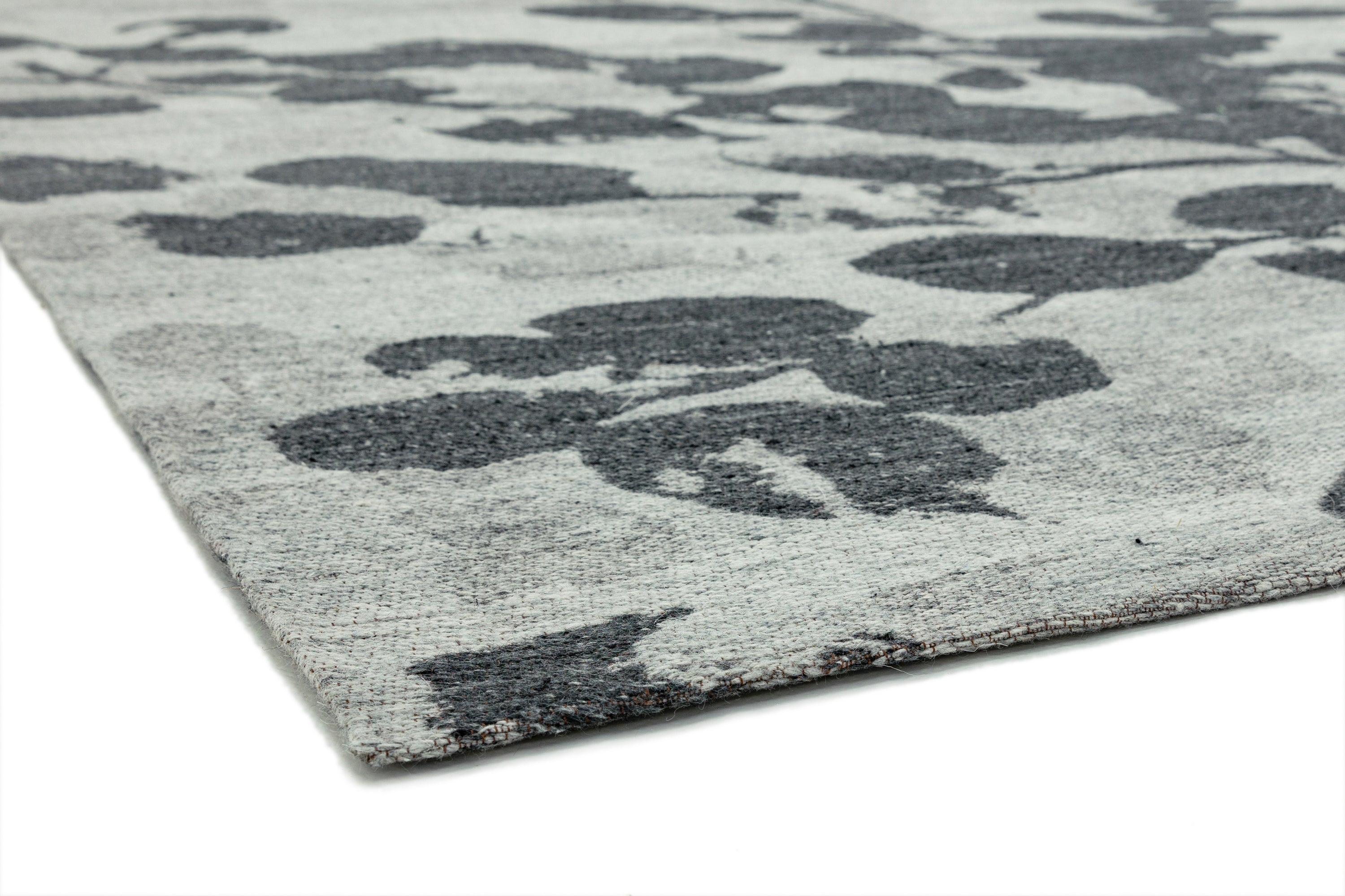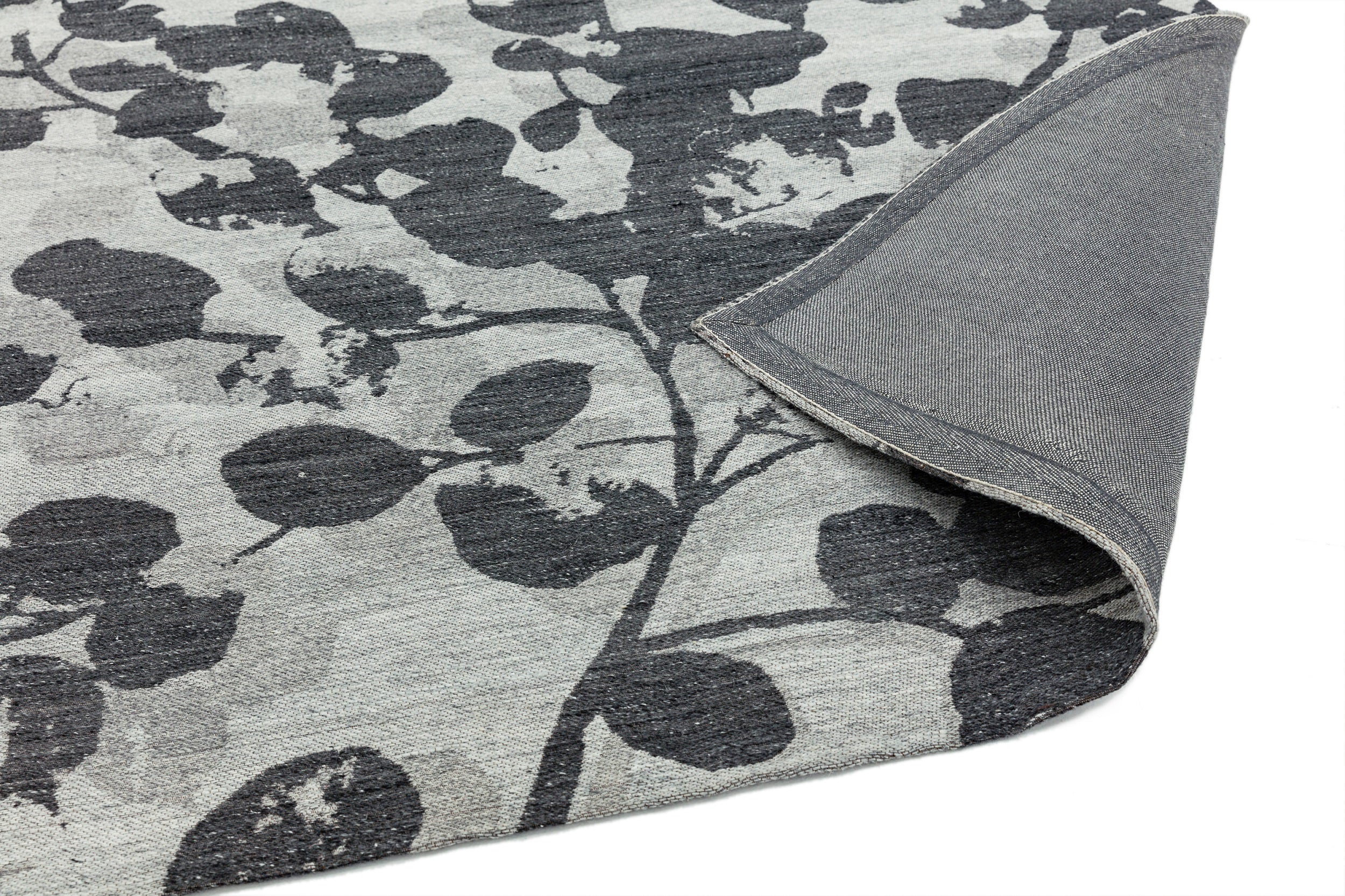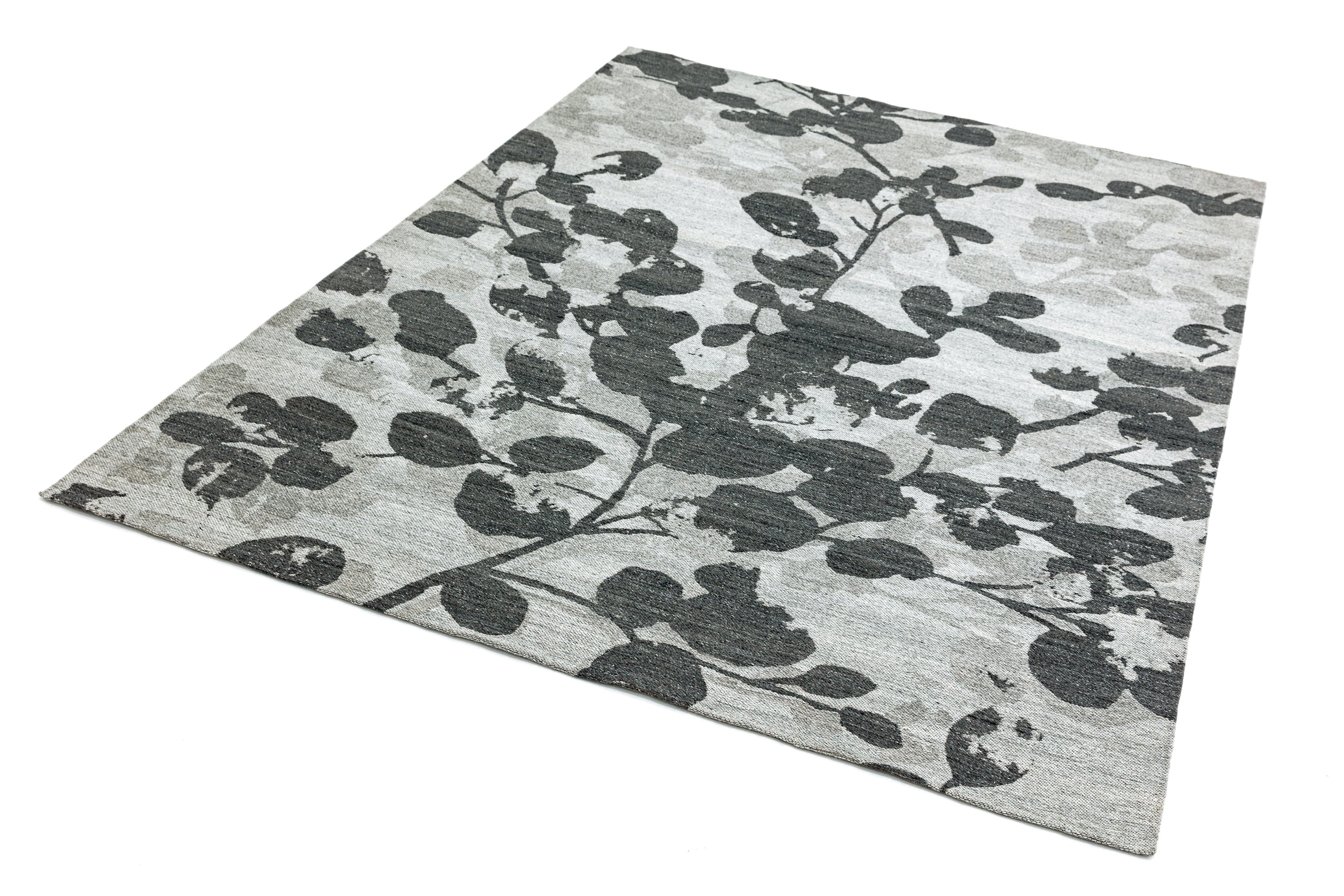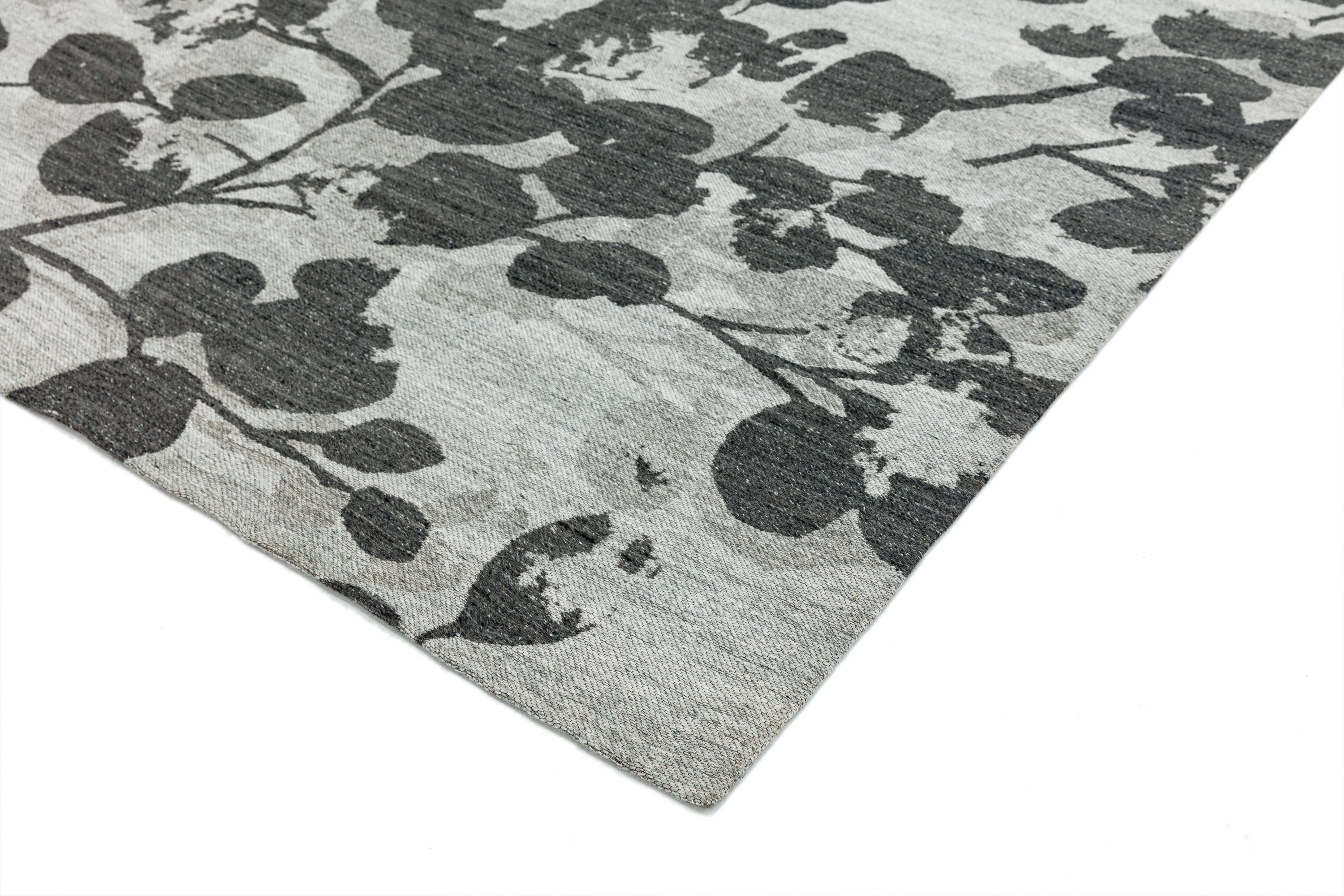 Shade Leaf Floral Wool Flatweave Rug in Grey Large 200x290 cm
