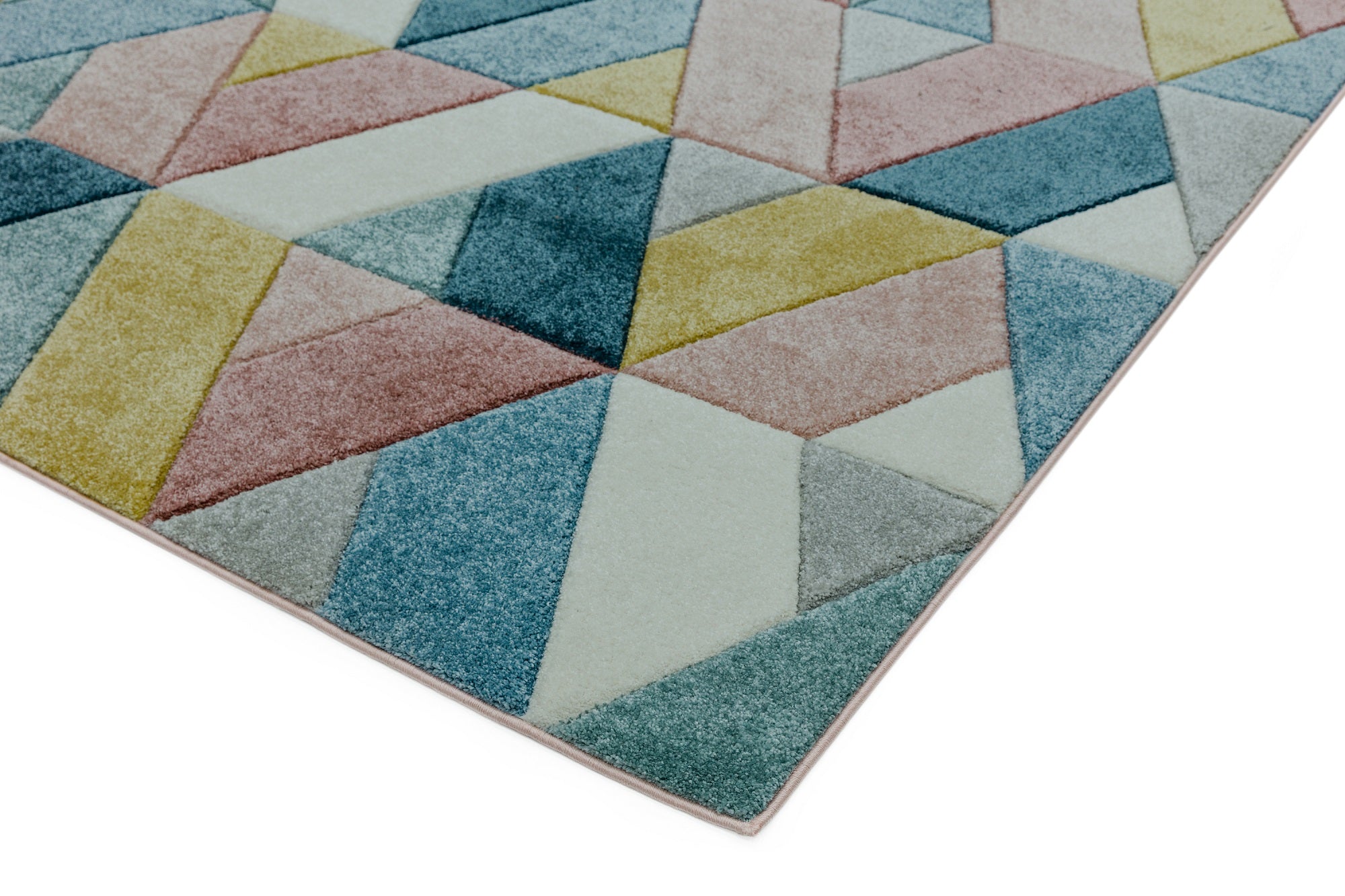 A fresh palette of bright pastels featuring bold hand-carved geometric designs that add texture and enhance the depth of the pile across the collection. Add a splash of colour in your home with our new Sketch collection. The Rhombus SK01, SK02 rug creates a modern and contemporary vibe with its Pastel and grey multi-colours and Geometric design. A perfect addition to your living room or bedroom areas for those wanting to create a focal point with a pop of colour. Made with 100% polypropylene yarn which benefits from being super soft, easy to clean, anti shed and very hard-wearing. This rug has a pile height of 13mm. Available in small to large sizes.