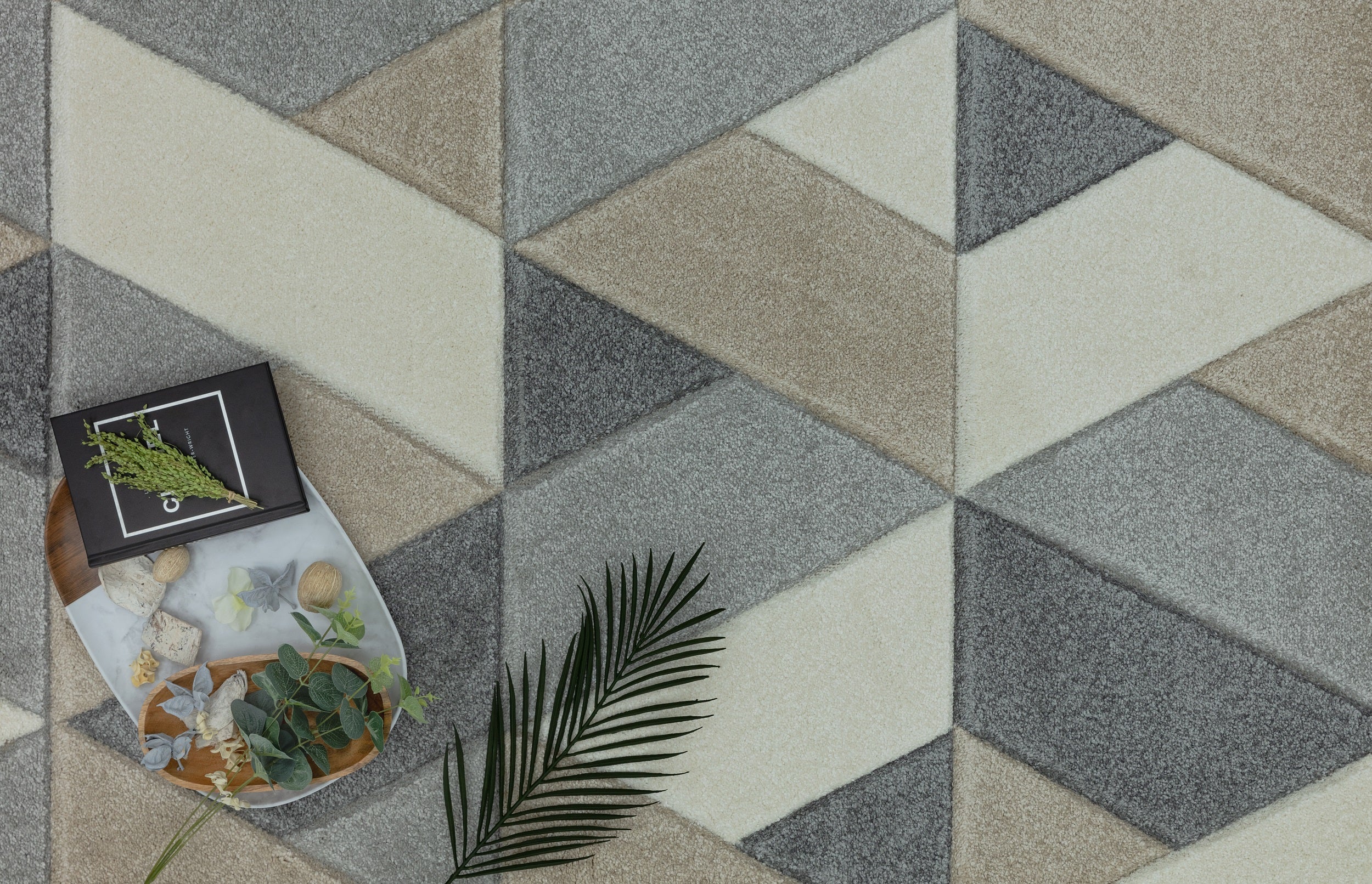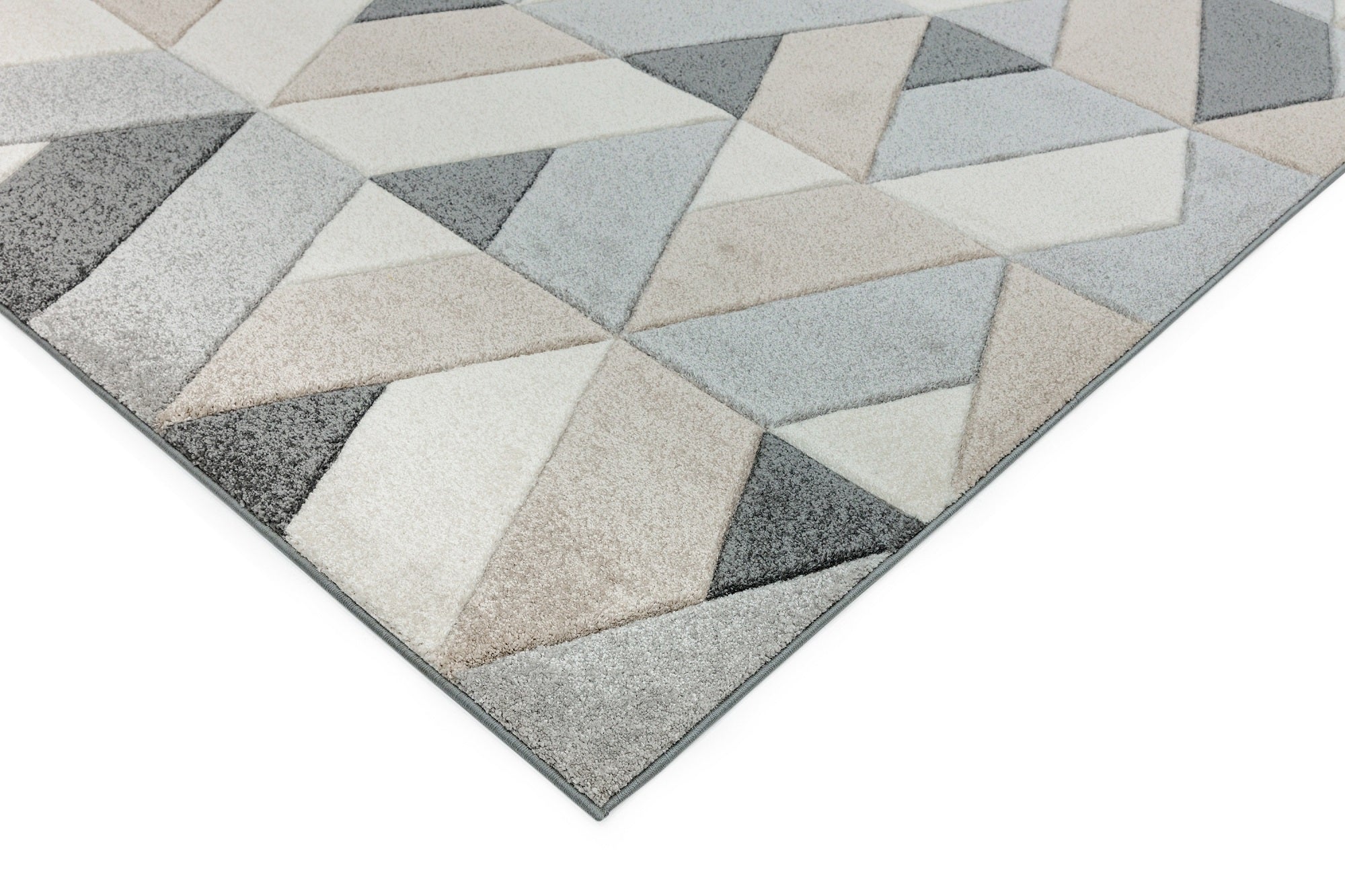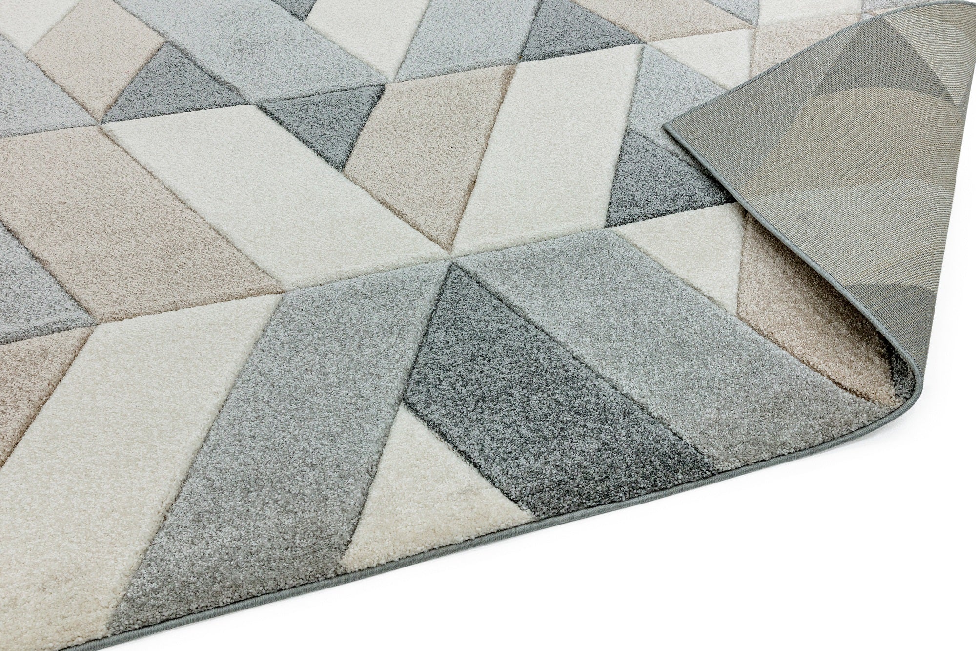 Sketch Rhombus Geometric Hand Carved Rugs in Grey Pastel Multicolour