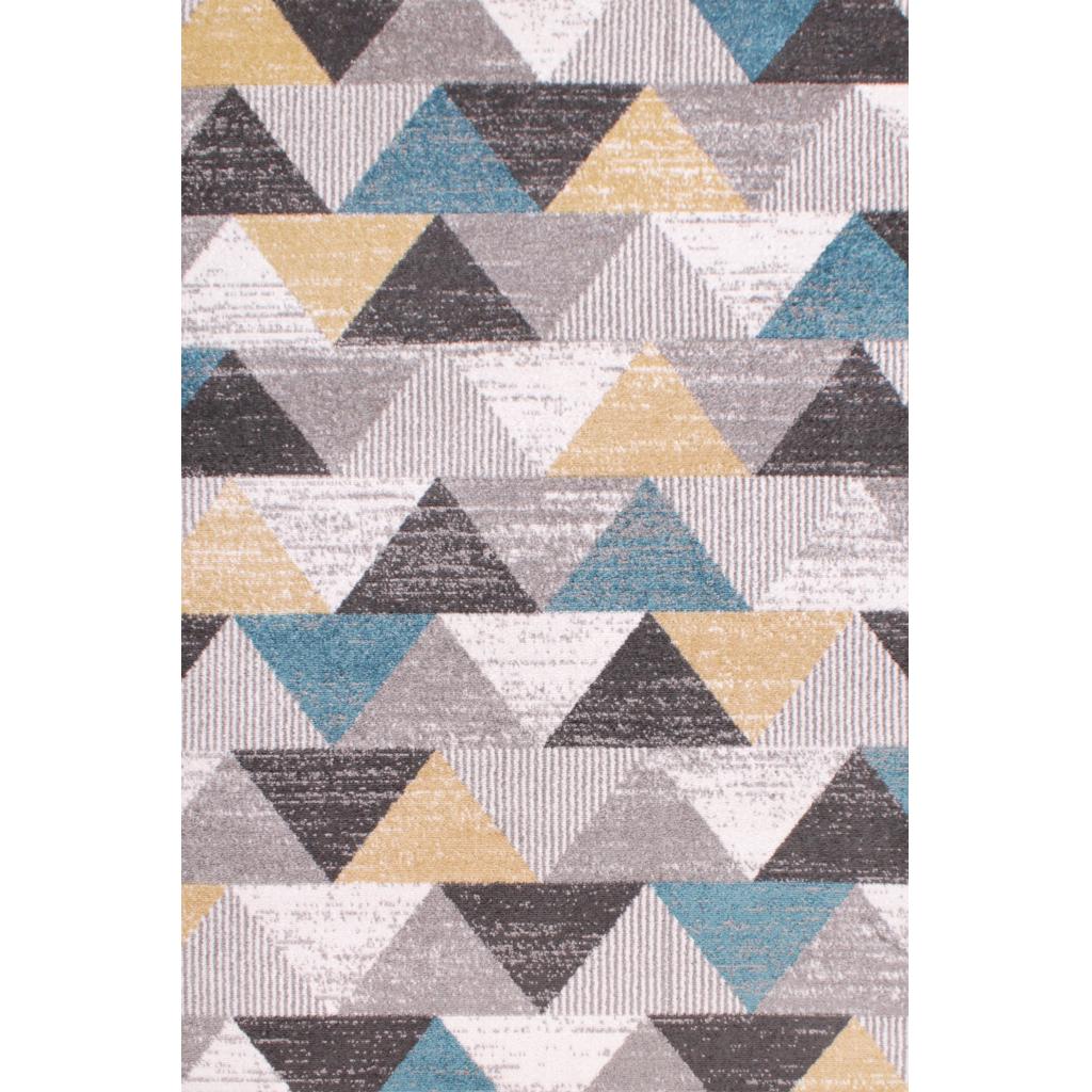 Spirit Triangle Geometric Modern Rug in Grey, Black, Red and Ochre Teal